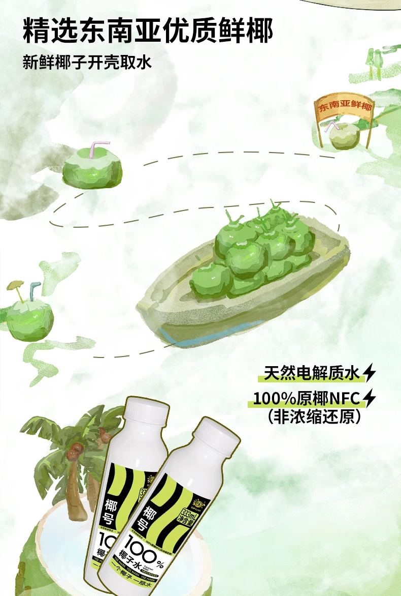 【买一送一】椰号100%椰子水天然电解质快速补水 333ml(保质期到2025年6月24日,介意勿拍)