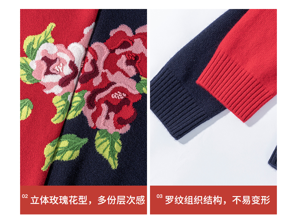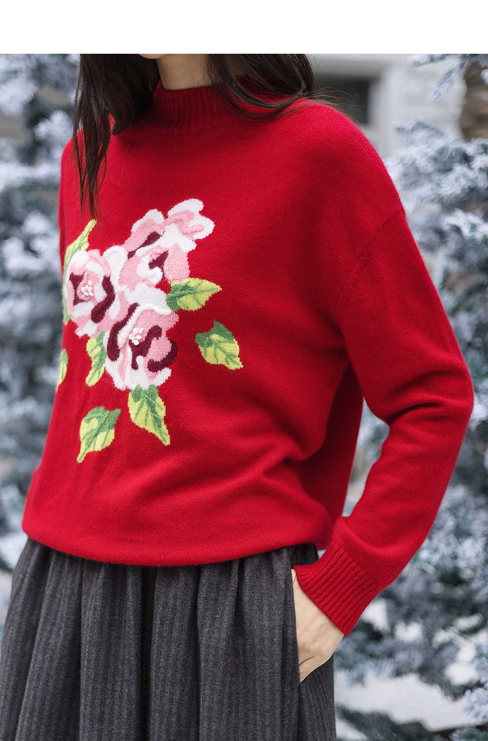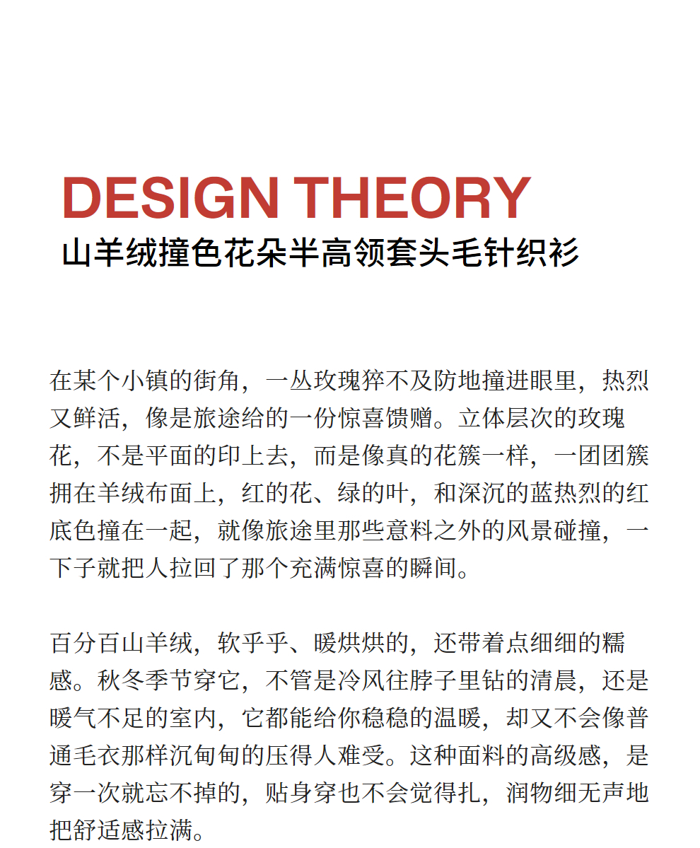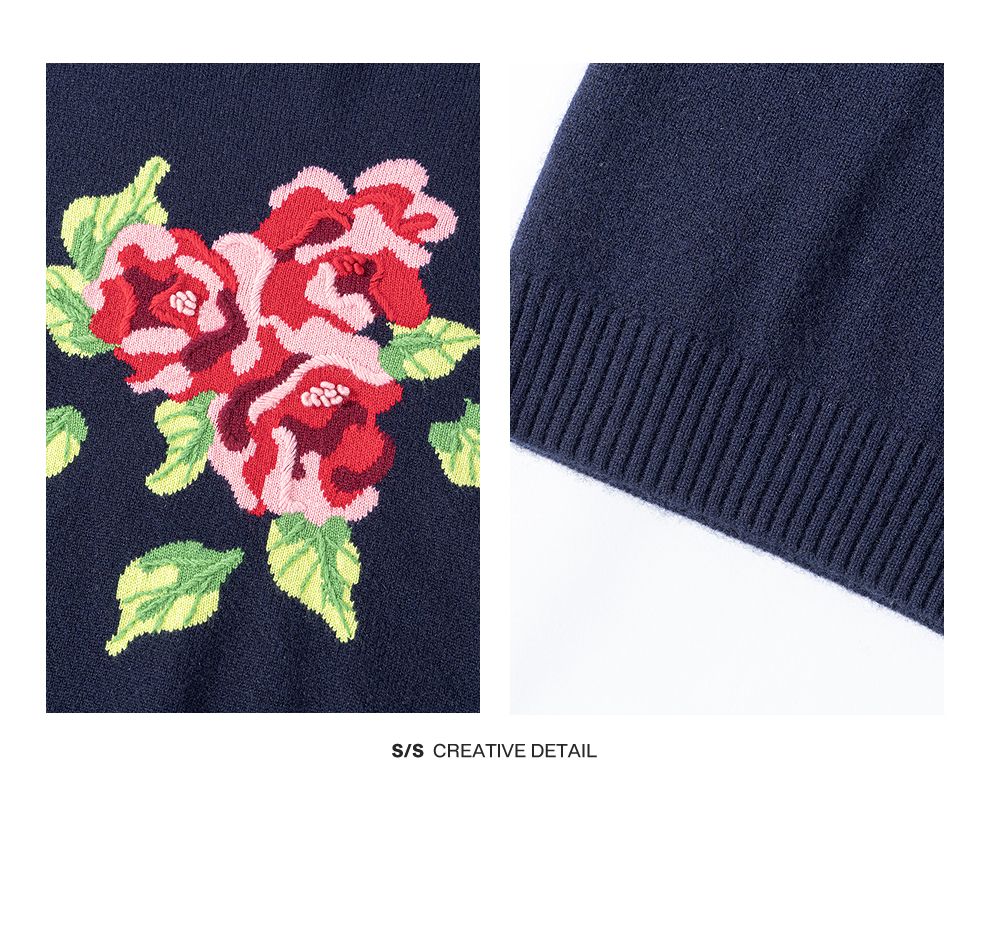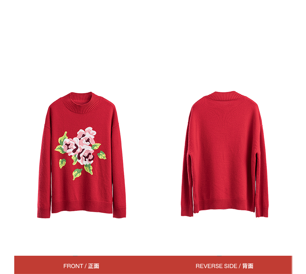 绽放823朵/纯山羊绒毛衫撞色花朵落肩半高领套头毛针织衫内搭毛衣