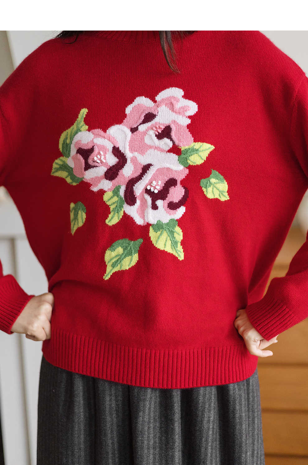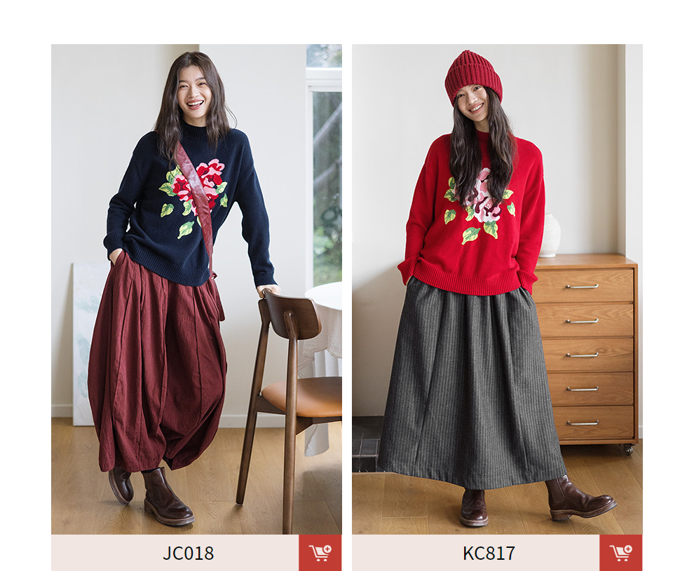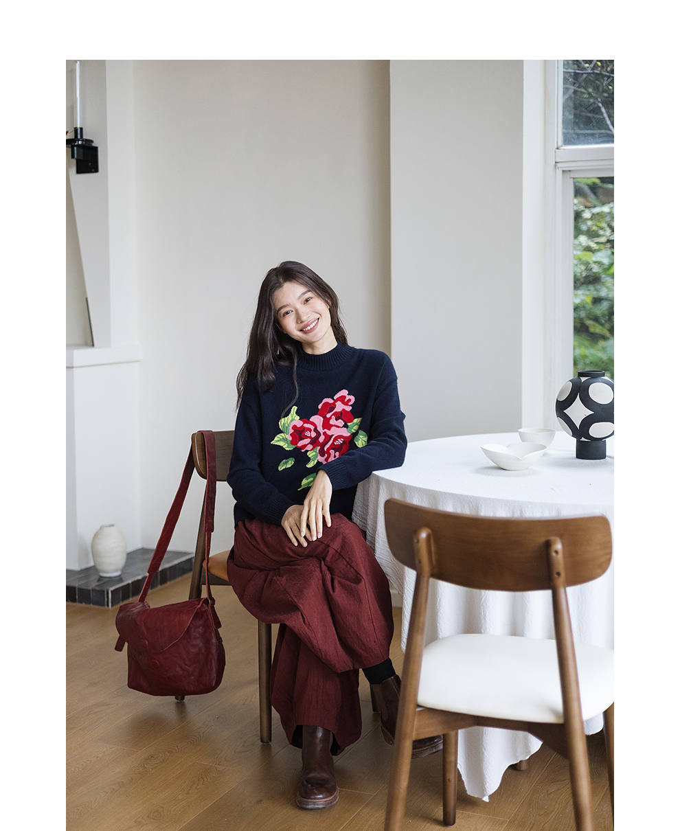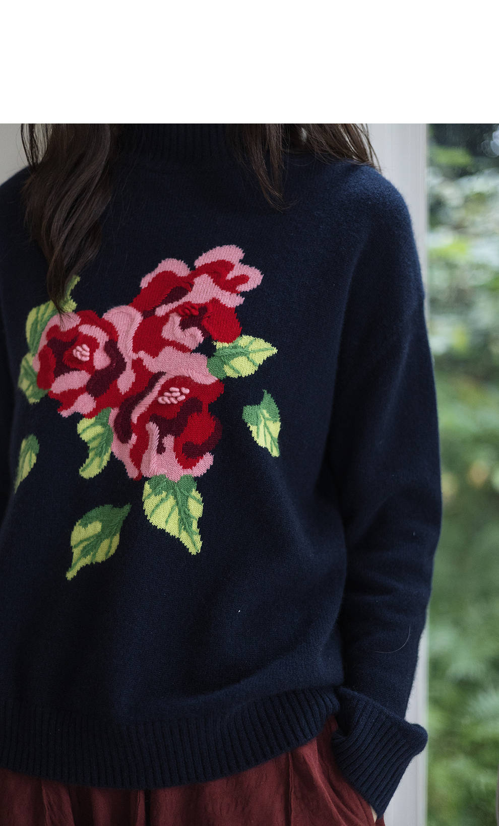 绽放823朵/纯山羊绒毛衫撞色花朵落肩半高领套头毛针织衫内搭毛衣