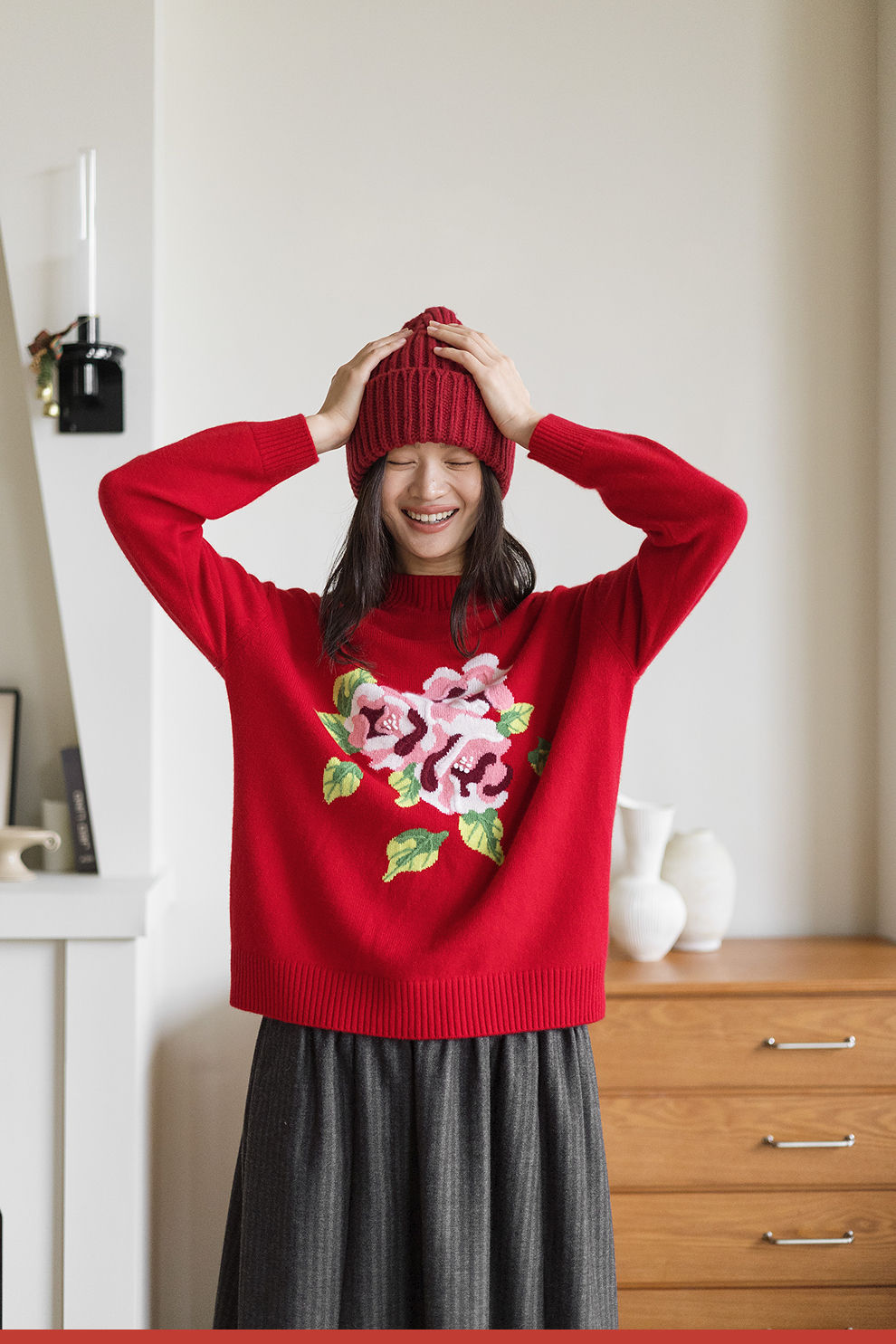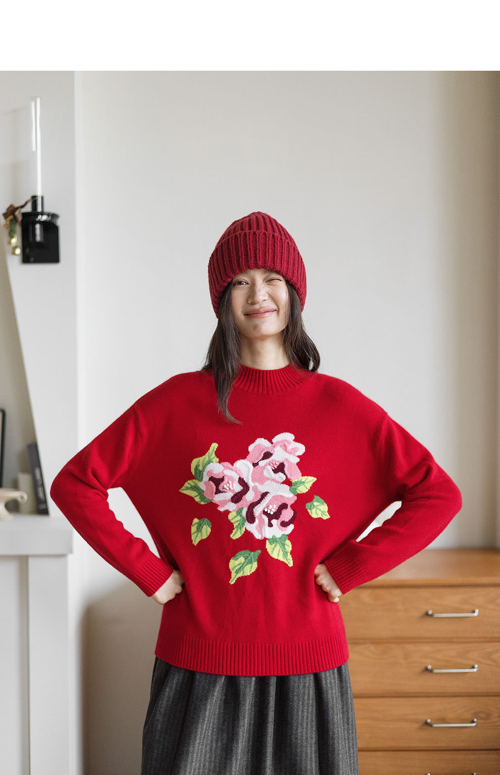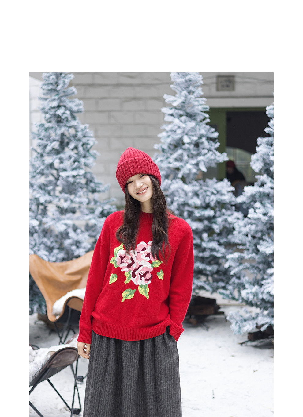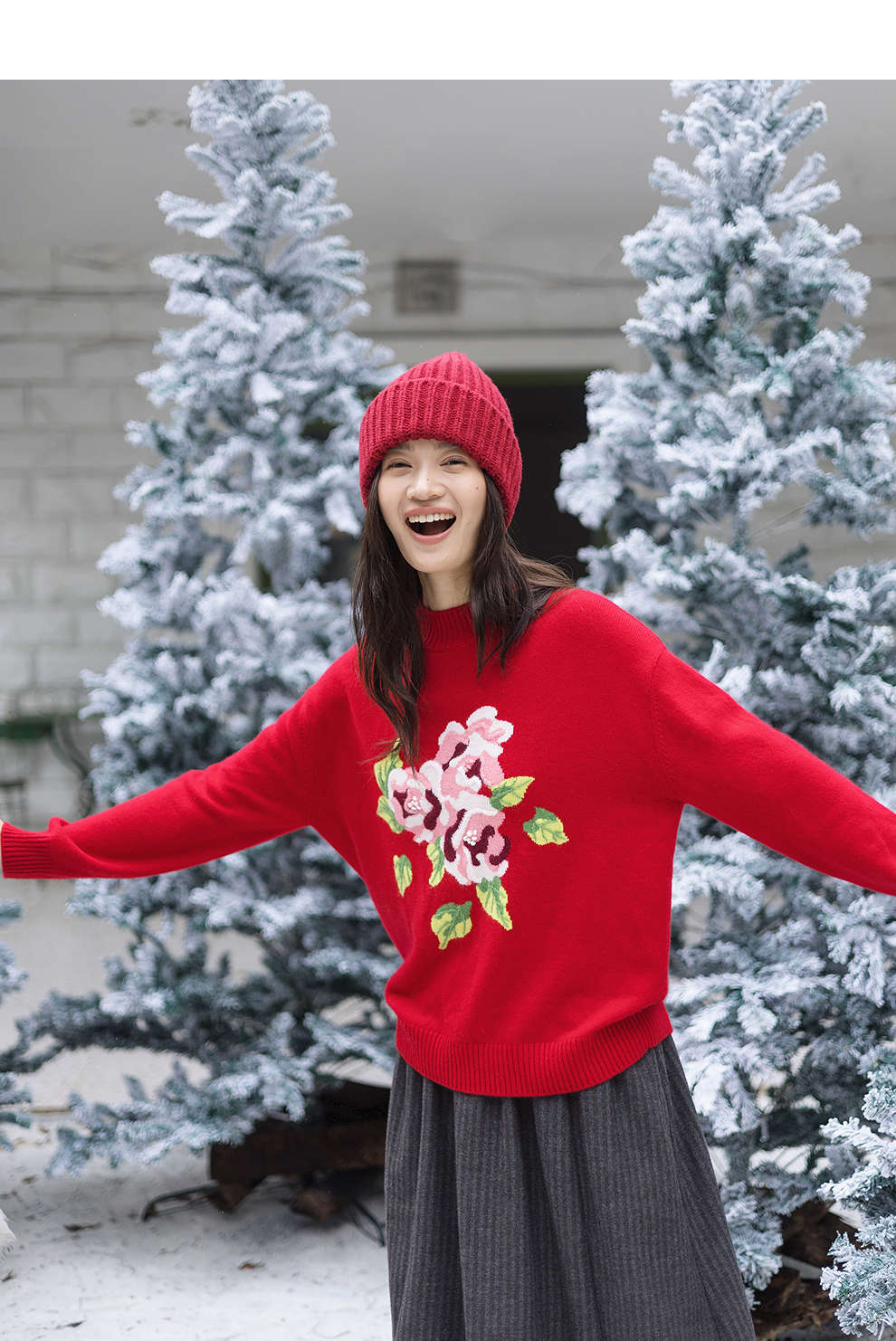 绽放823朵/纯山羊绒毛衫撞色花朵落肩半高领套头毛针织衫内搭毛衣