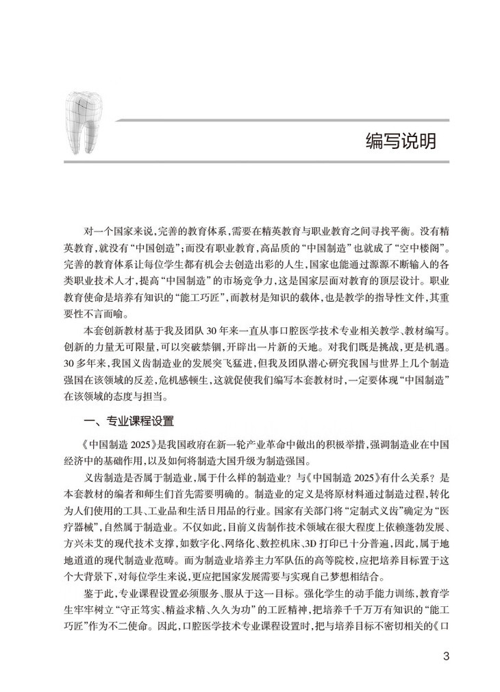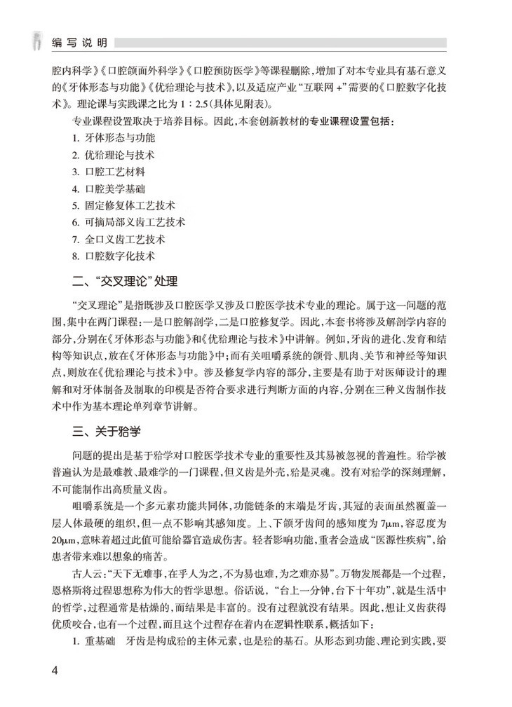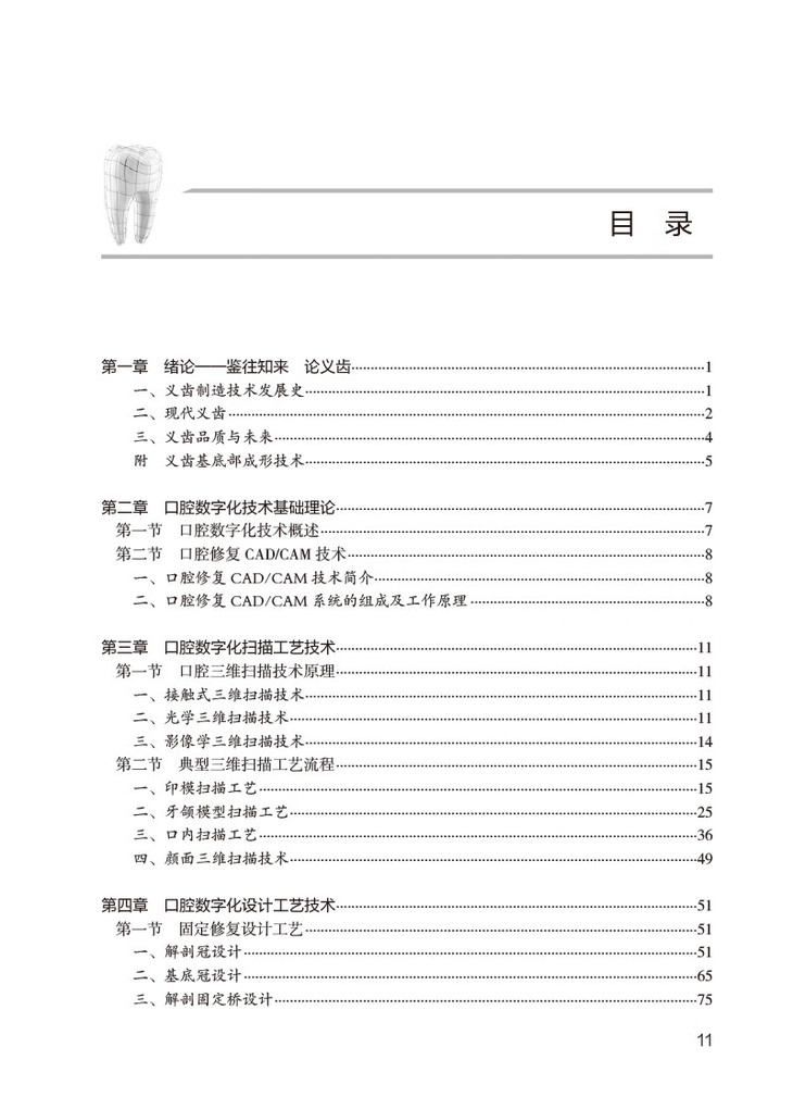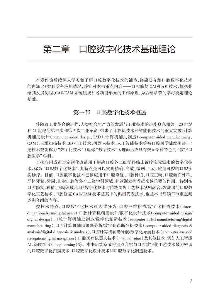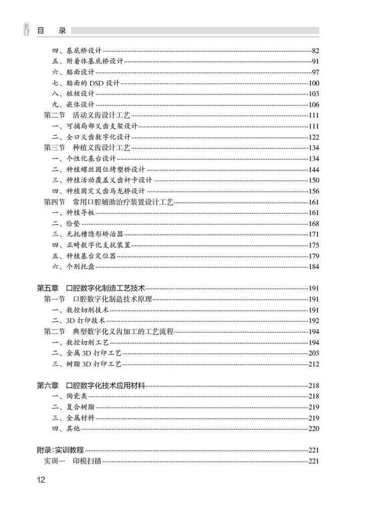 全书共5个部分。主要包括:1.口腔数字化技术相关基本理论和知识,2.口腔数字化扫描工艺技术,3.口腔数字化设计工艺技术,4.口腔数字化制造工艺技术,5.口腔数字化修复材料。更新内容包括附着体基底桥的设计、贴面的DSD设计、种植活动覆盖义齿杆卡设计、种植固定义齿马龙桥的设计、正畸数字化支抗装置设计、种植定位器的设计和活动个别托盘的设计,同时,对目前最新的立体摄影扫描技术、口内动态数据记录技术进行补充介绍,并配有大量的操作照片,方便学生的理解与学习。内容基本涵盖口腔技工室实际的工作内容,并具有一定的前瞻性,可作为口腔工艺教学教材,也可以作为临床医生和口腔科技师学习用参考工具书。