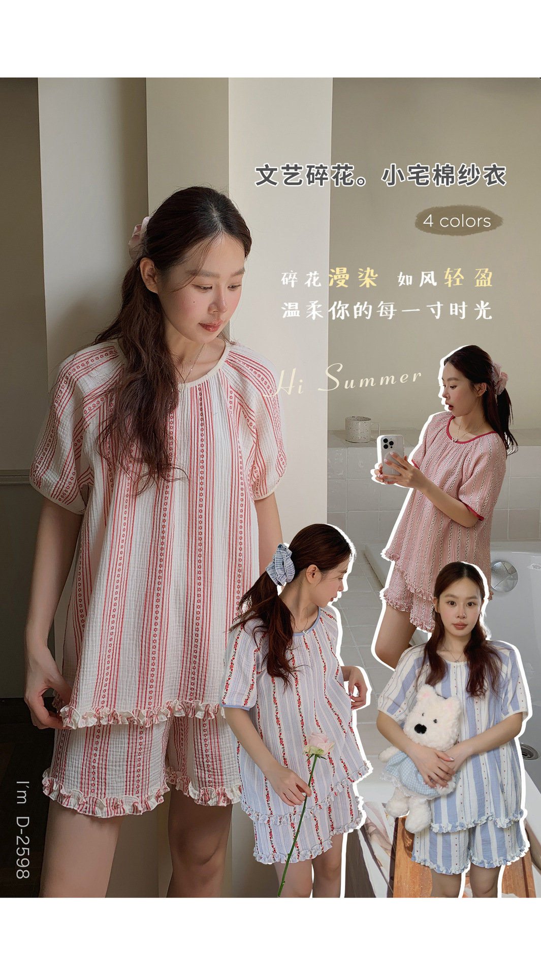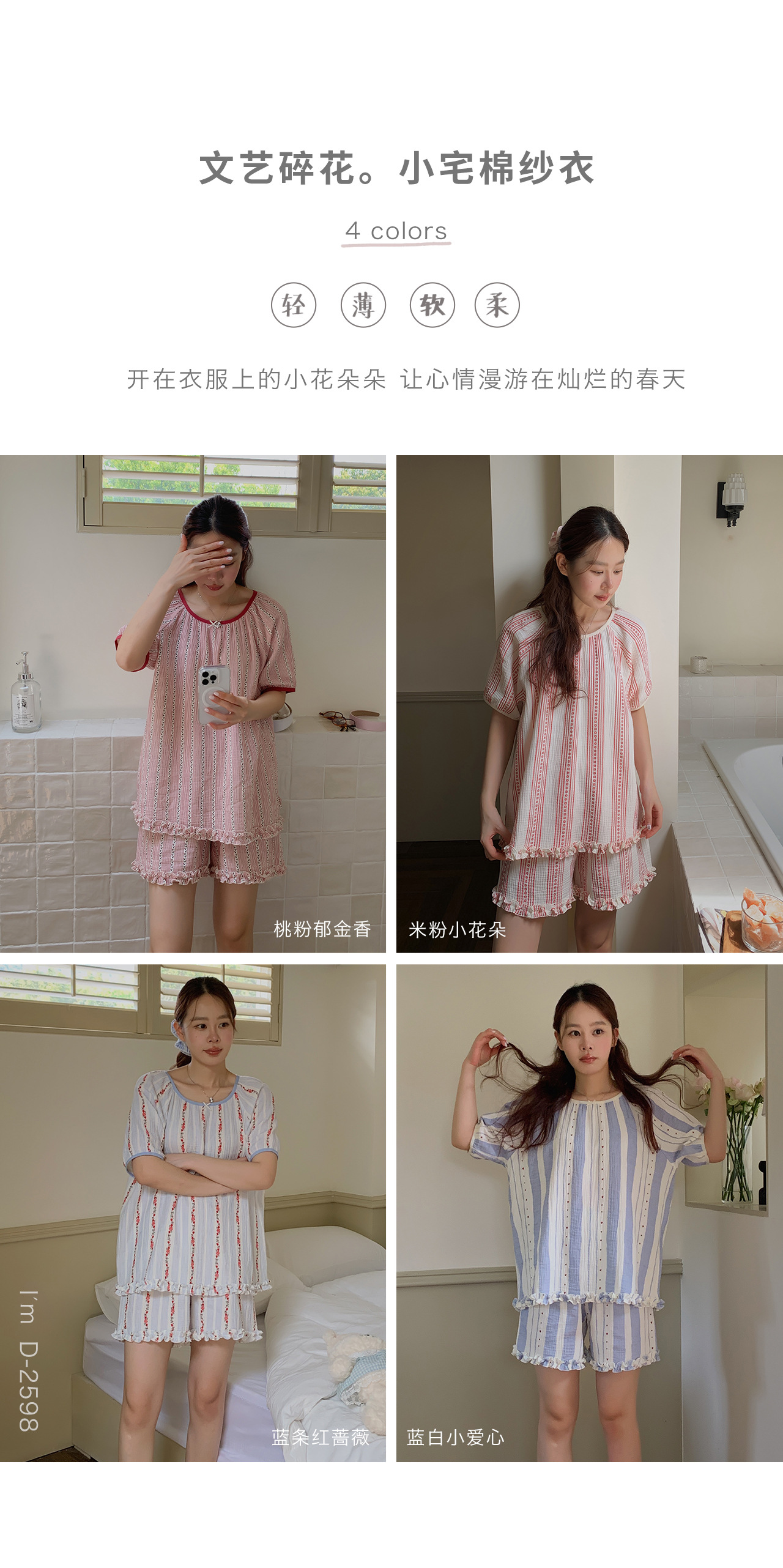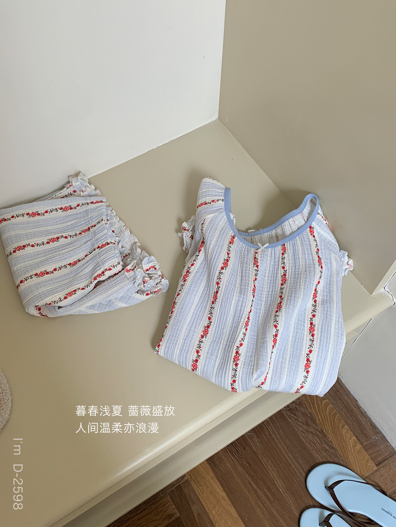 【柔软棉纱】2025新款文艺碎花双层棉纱短袖睡衣/睡裙 透气棉纱衣休闲家居服