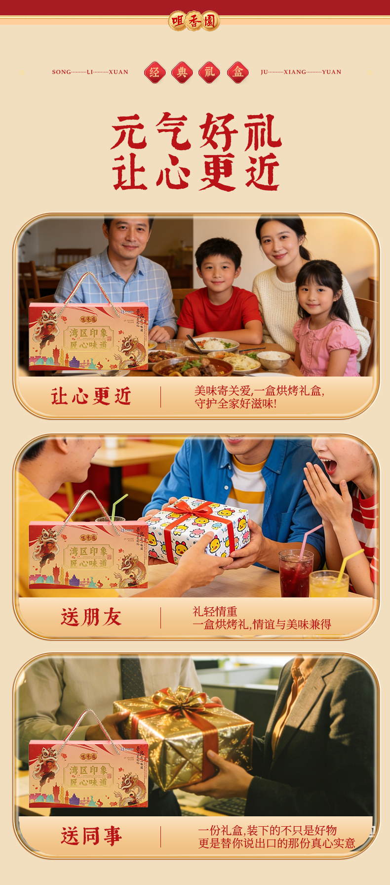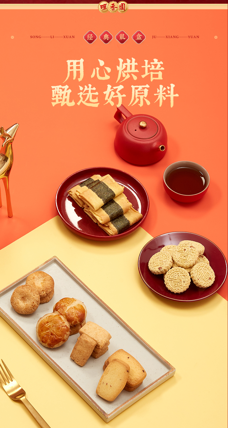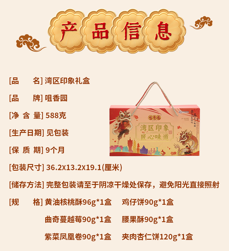 【咀香园湾区印象礼盒588g】六盒装 团购送礼手信杏仁饼鸡仔饼曲奇饼
