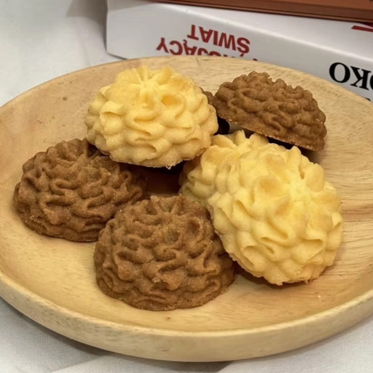 原味小花:经典黄油风味,口感酥松绵密,奶香浓郁。