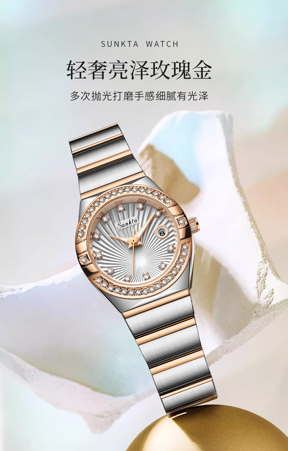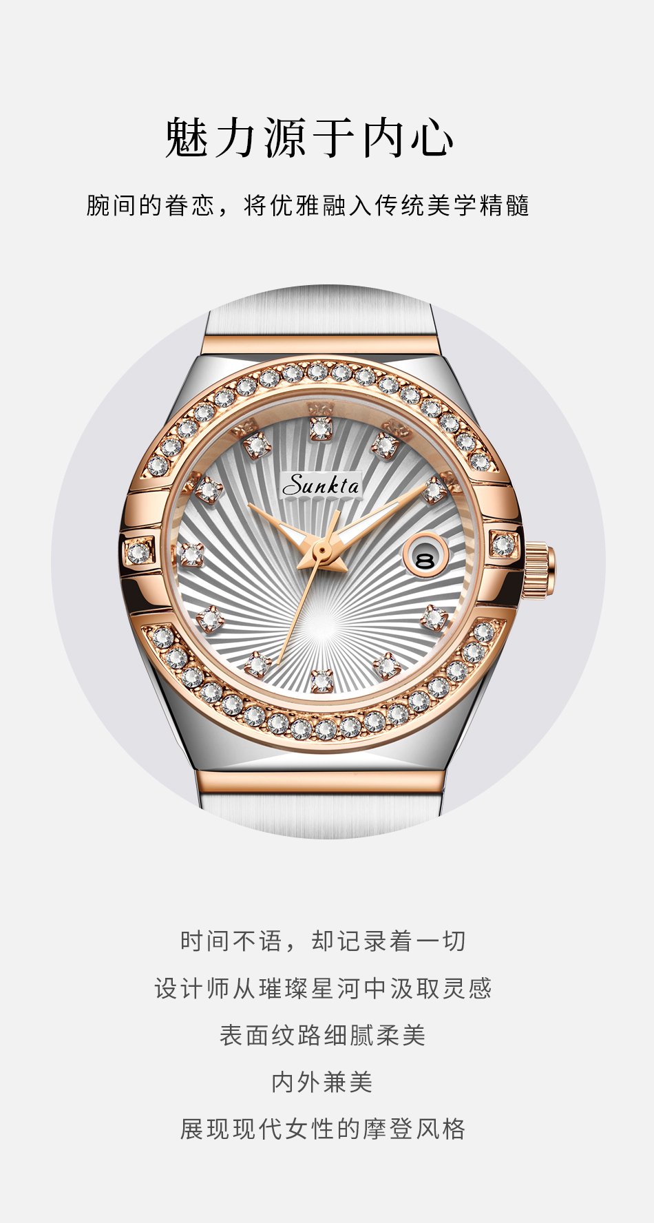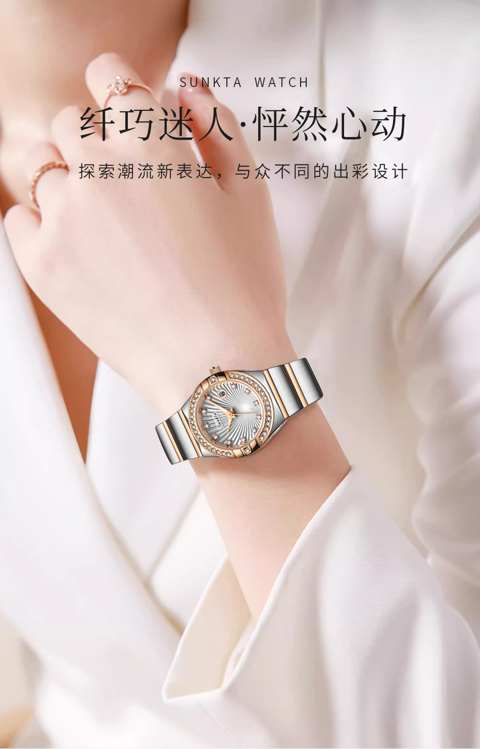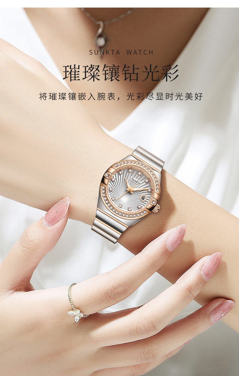 SUNKTA 桑达 时尚防水石英女表 不锈钢腕表 ST6715