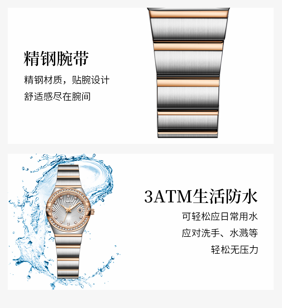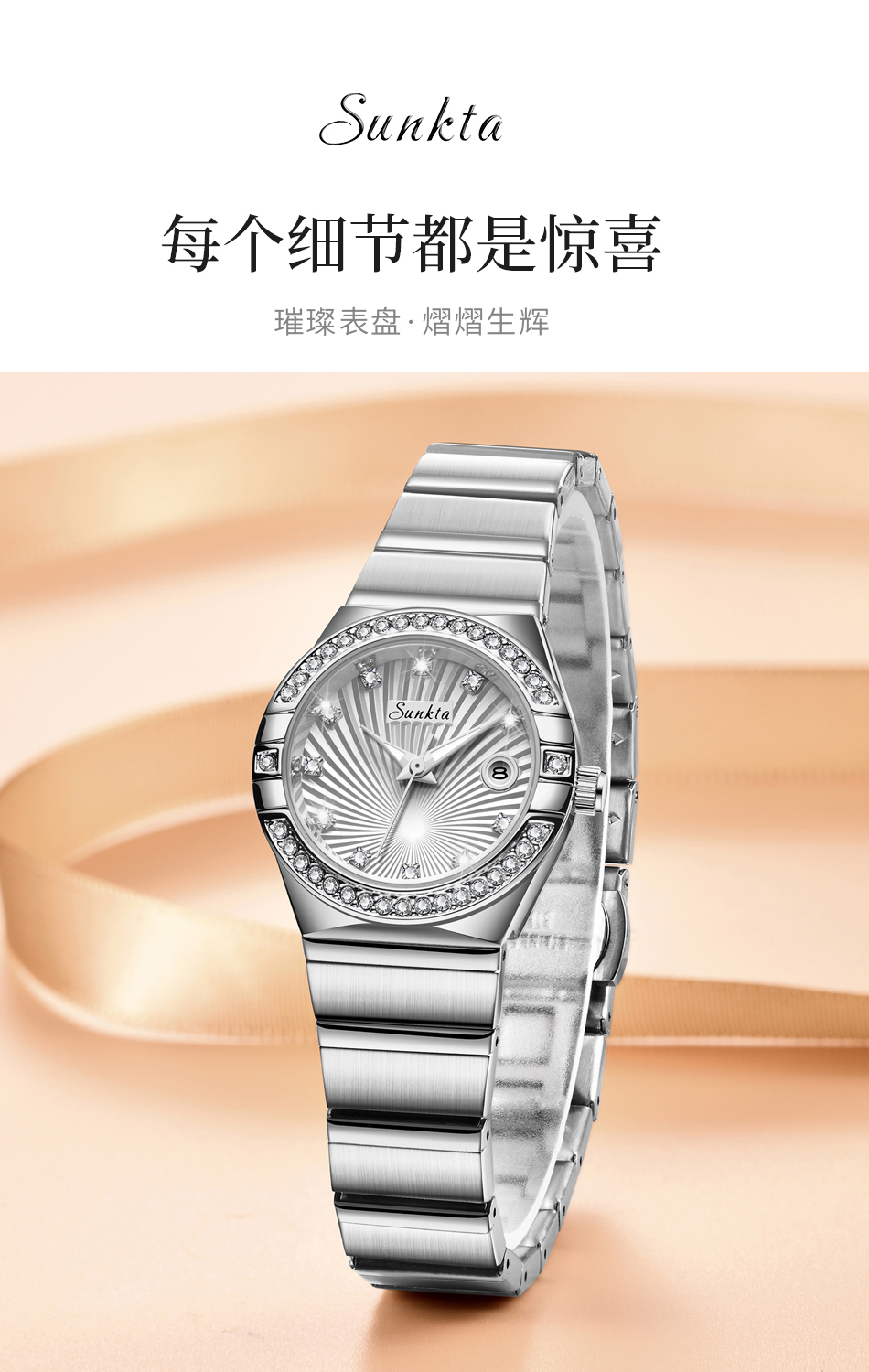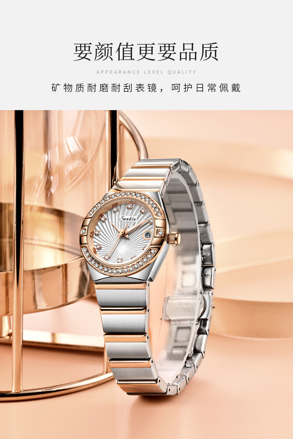 SUNKTA 桑达 时尚防水石英女表 不锈钢腕表 ST6715