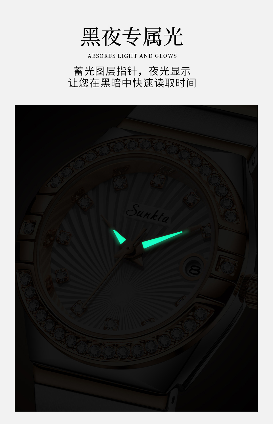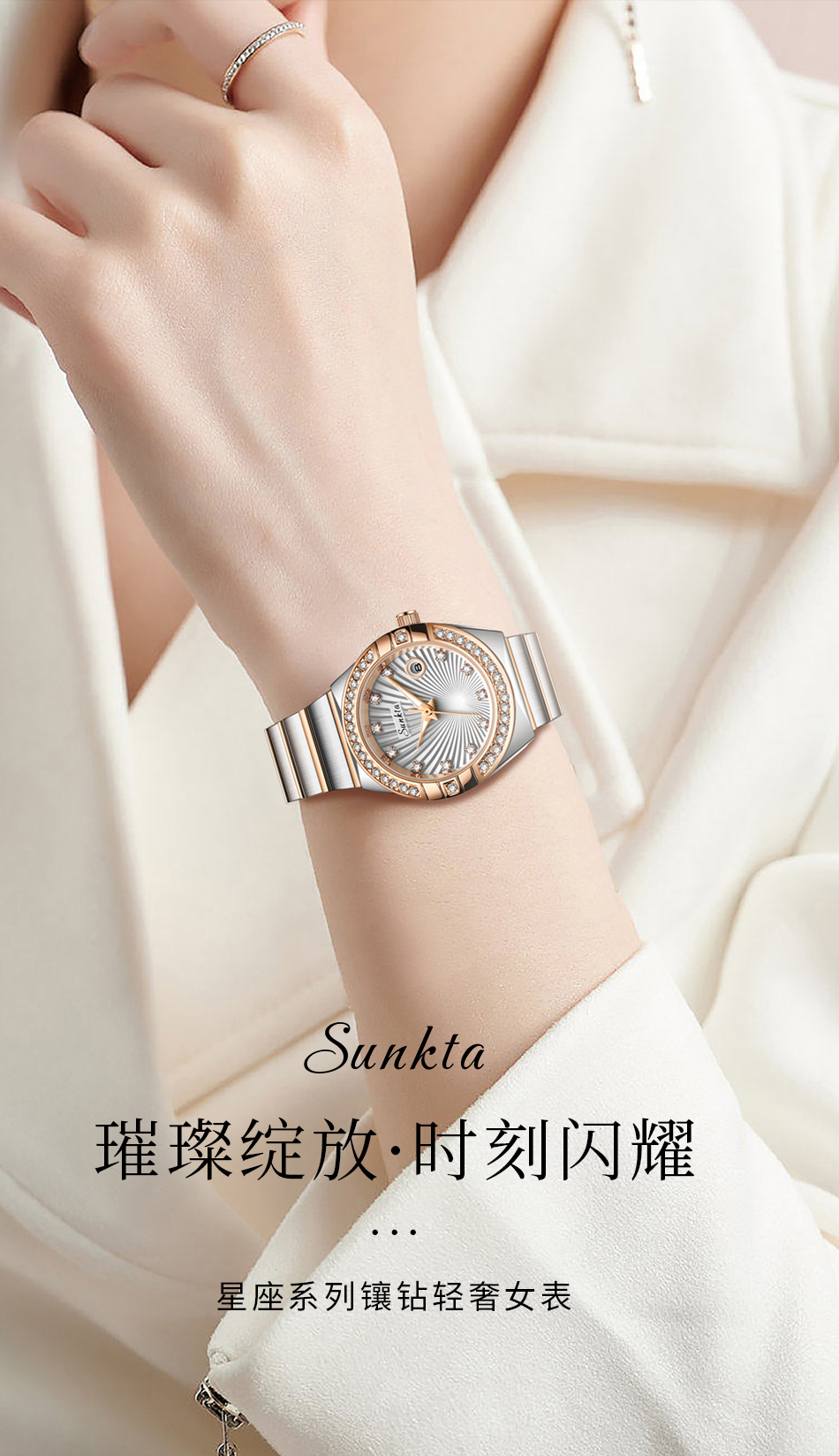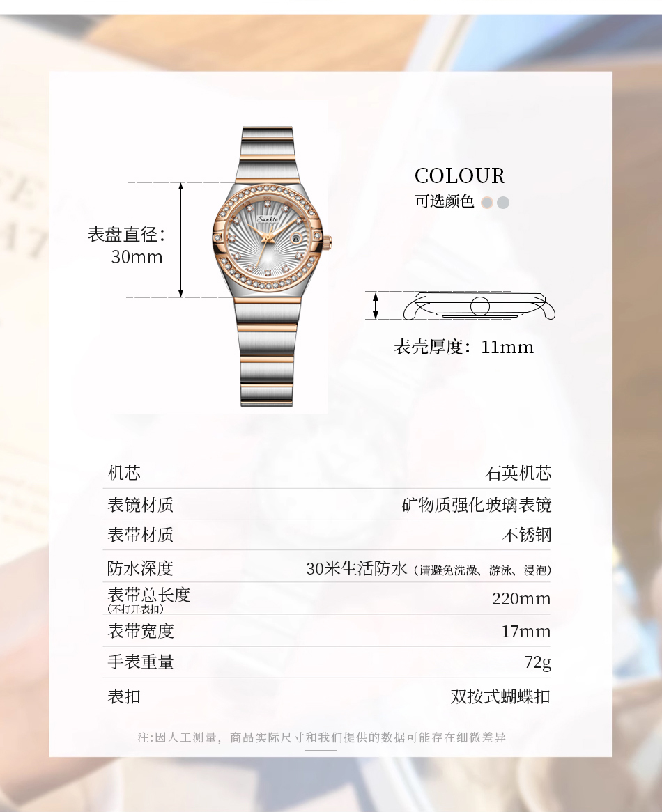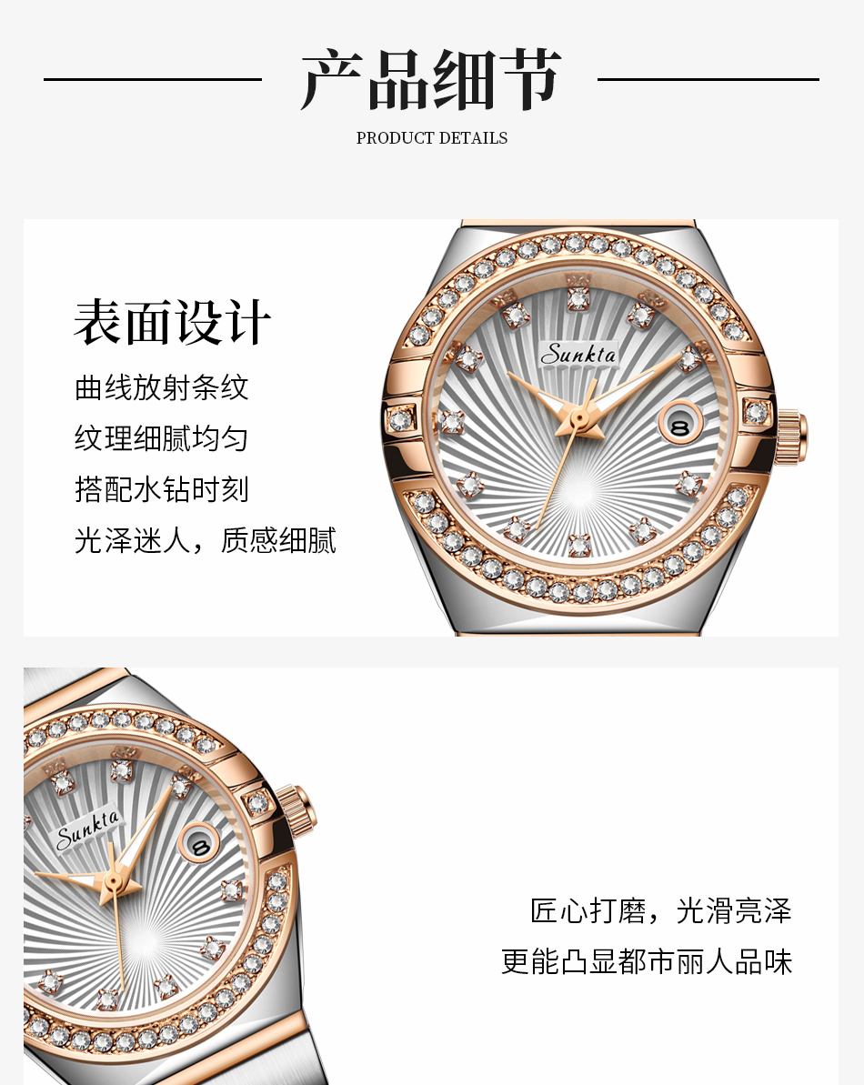 SUNKTA 桑达 时尚防水石英女表 不锈钢腕表 ST6715
