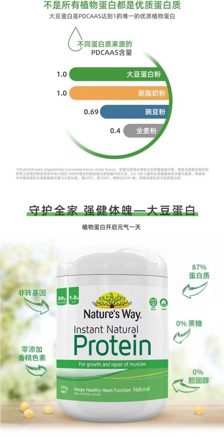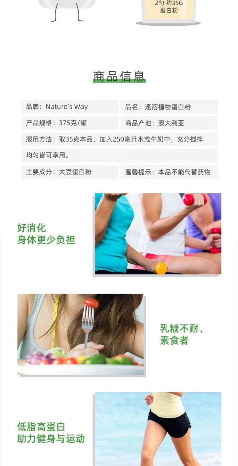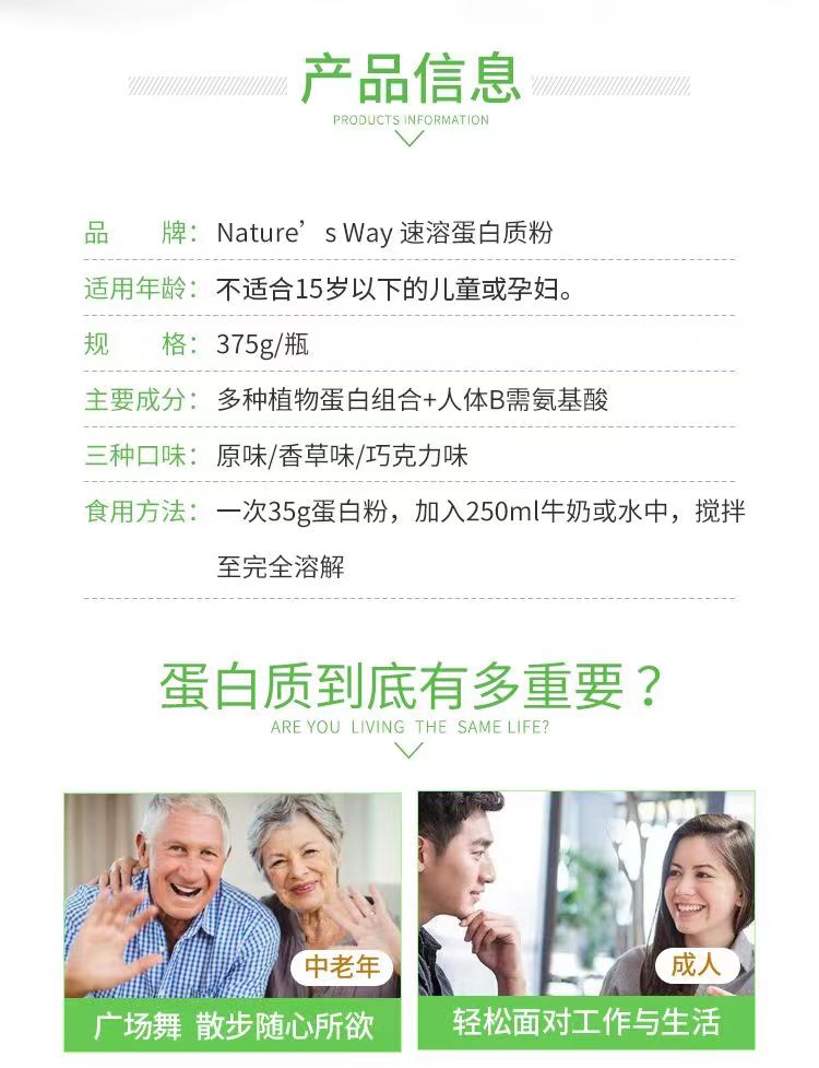 【保税仓/香港直邮】澳洲佳思敏Nature's Way蛋白粉375g(原味/香草/巧克力)