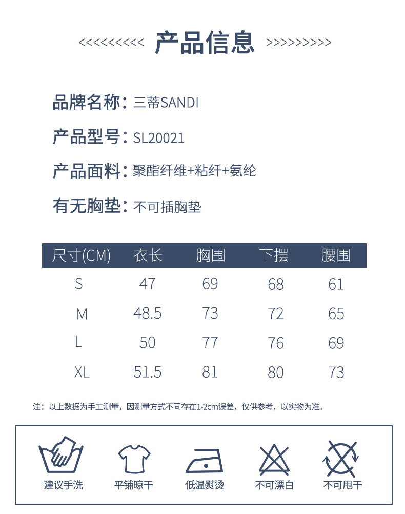 SANDI品牌短袖不可插胸垫SL20021