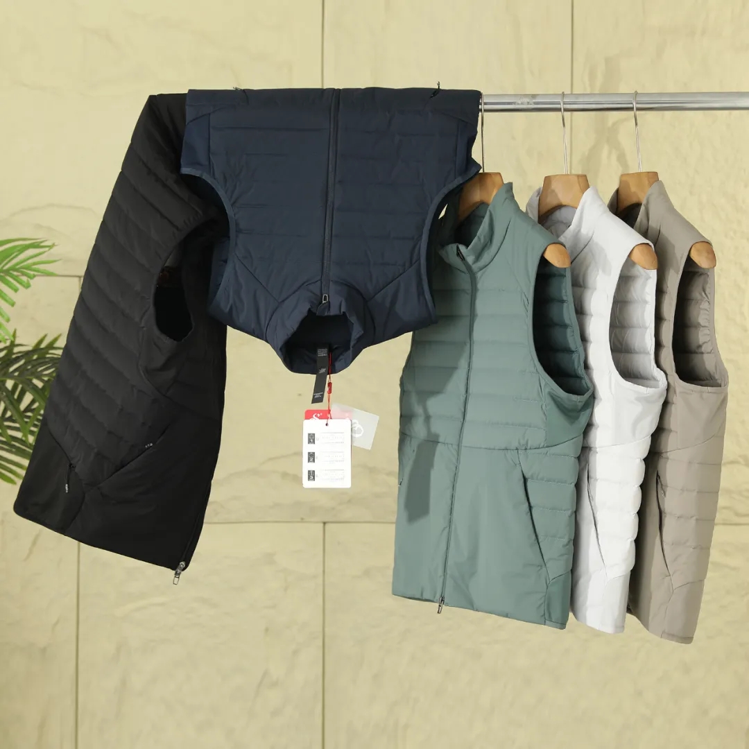 颜色:碧石绿 海军蓝 碳尘色 碳素黑 犀牛灰 尺码:XS----2XL 户外越野、城市休闲!对于战术性山地活动,耐用且具有保护性的设计,稳定性更强 耐洗耐穿,各种条件下都可以活动自由。 ·防风、轻量、透气·人体工学接缝,较大程度减少摩擦,柔软而舒适 ·立体裁剪、活动自如·正肩版型、简约百搭·休闲、户外、商务、各种日常活动 专业面料:90%聚酰胺纤维,10氨纶 防风、舒适、透气面料可提供多面防护。 衣领和肩部采用夹层设计遇湿仍保暖 外侧拉链口袋,腰部后侧拉链小口袋设计 经典版型,臀部长度 这款羽绒马甲采用功能型面料,在温度下降时助你保持温度 轻盈的鸭绒填充,搭配弹力面料的拼接结构,让你活动自如 袖子部位采用贴合裁剪,立领设计有助锁住温暖
