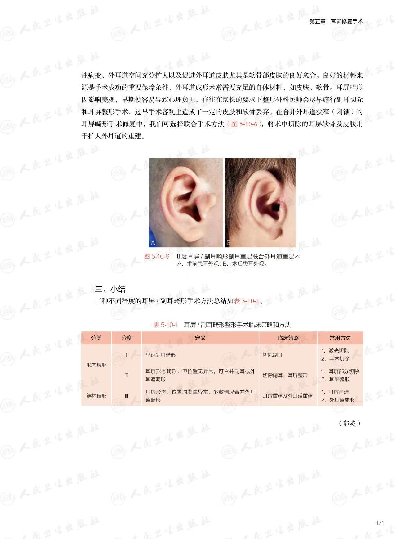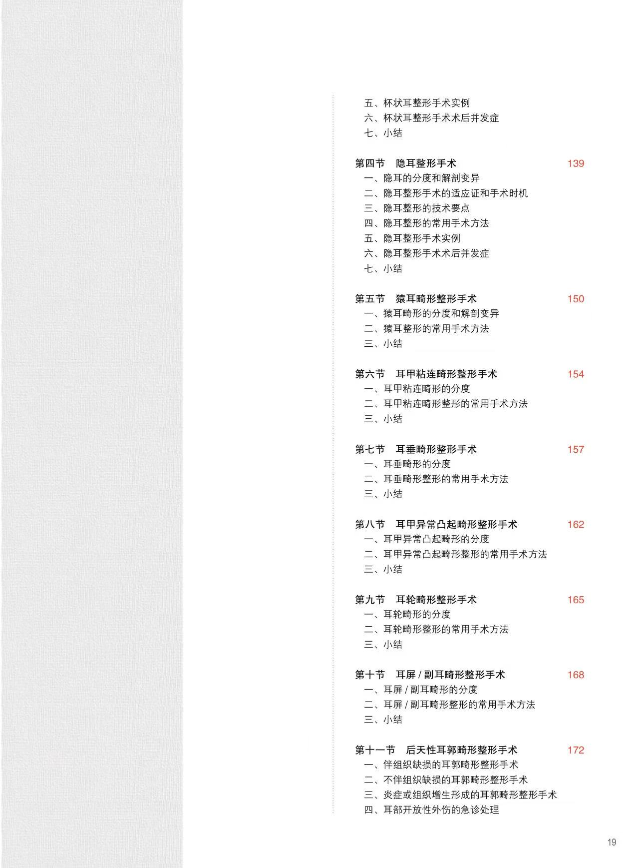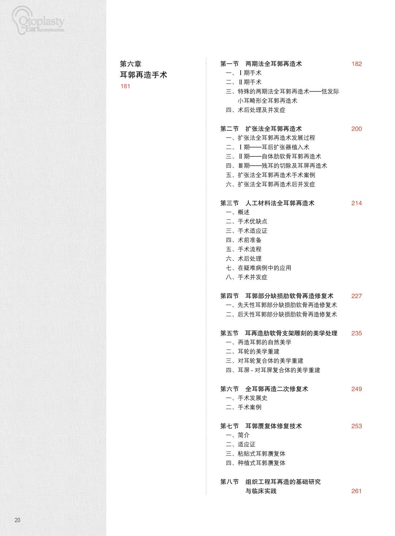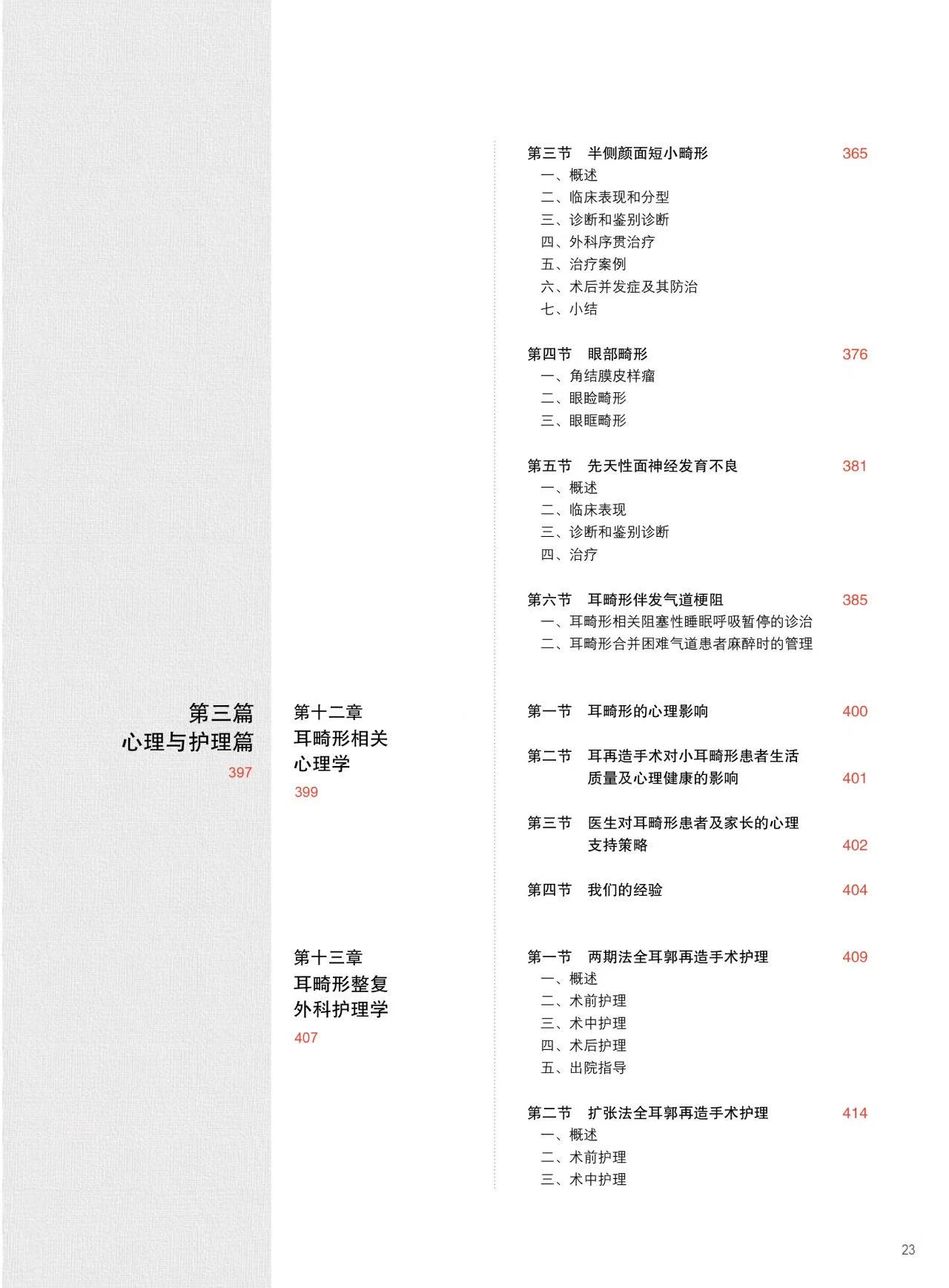 本书分三篇(基础篇、外科治疗篇、护理篇),共十章,分别为外中耳的形态与解剖生理基础、外中耳的发育、外中耳畸形的影像学表现、耳模矫正技术、耳郭修复手术、耳郭再造手术、功能性耳再造、耳郭肿物切除与修复、激光在耳郭整复中的应用、耳畸形相关综合征及伴发畸形、耳畸形相关心理学、耳畸形整复外科护理学。临床各章以病例展示为切入点,衔接国际进展,15年上海五官经验积淀,国内多位著名耳再造专家巅峰之作,国家科学技术著作基金资助。可谓是耳畸形整复领域的非常有价值的书籍。
