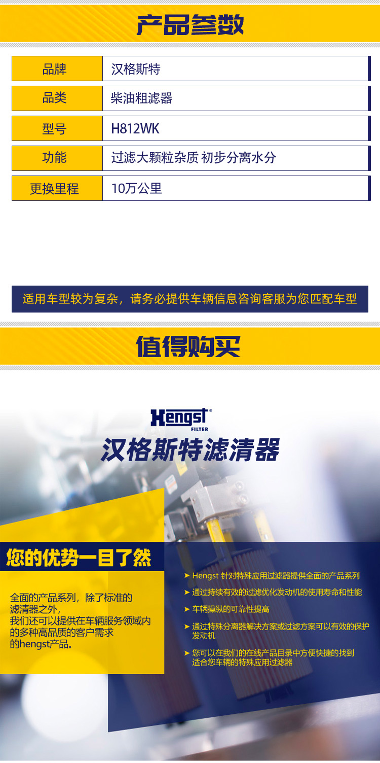 汉格斯特柴油粗滤长效滤芯WP10/12/13 H812WK