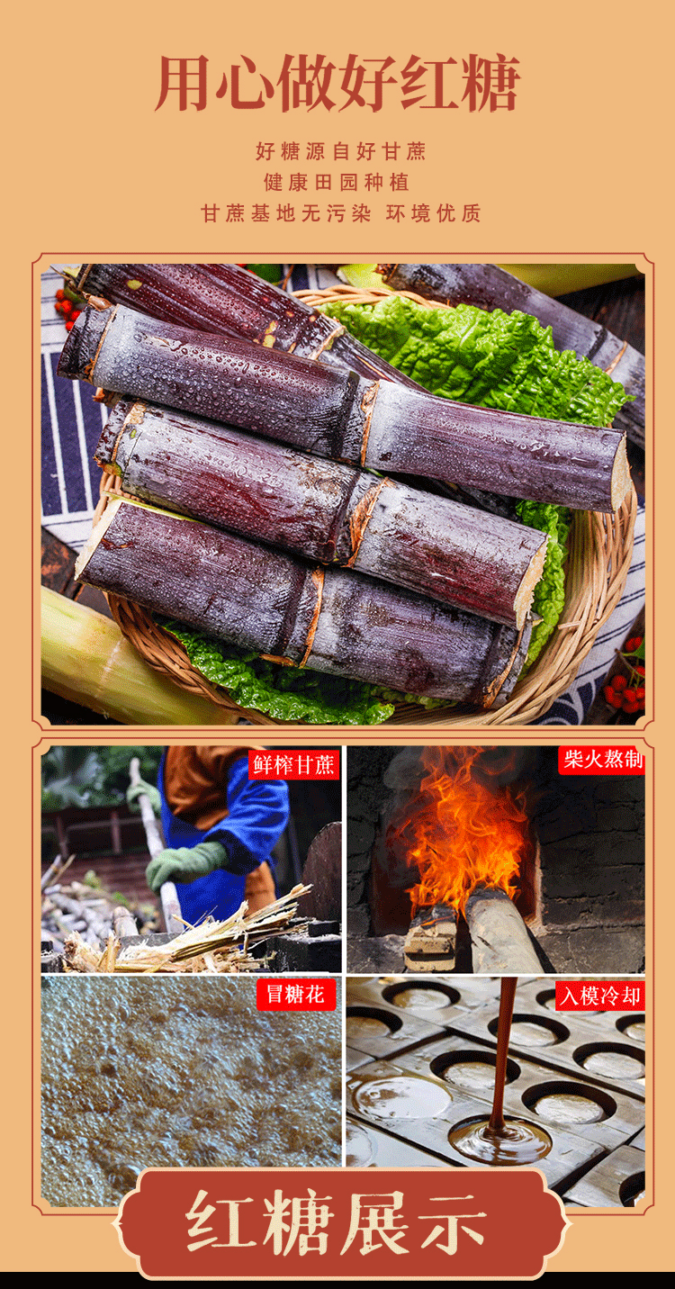【叶子红糖•云南古法】 15斤甘蔗熬1斤古法红糖 6次熬煮打沙共十八道工序 配料只有甘蔗 细腻清香甜而不腻 容易冲泡
