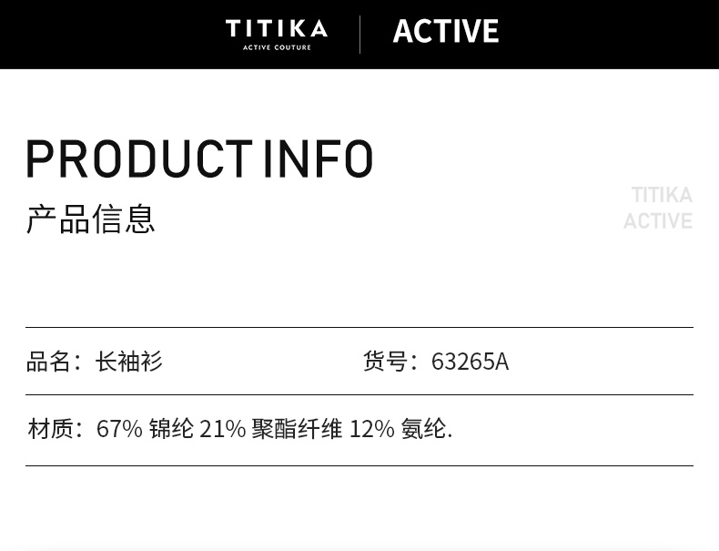 - 2009年,Titika Active Couture诞生于北美时尚之都,重新定义运动服饰,让运动时尚,前卫、性感,更宣扬一种无畏自由的生活态度。TITIKA缇缇卡不断求变,为品牌添加多种元素