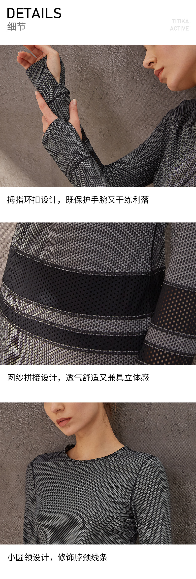 TITITKA瑜伽服运动健身T恤女吸湿透气跑步健身长袖上衣63265A