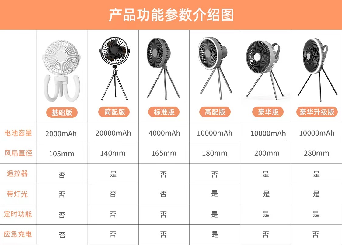 FXQ【户外露营风扇台扇吊扇吊灯三合一】挂立式野营三脚架户外风扇 多功能 便携帐篷吊扇灯usb充电