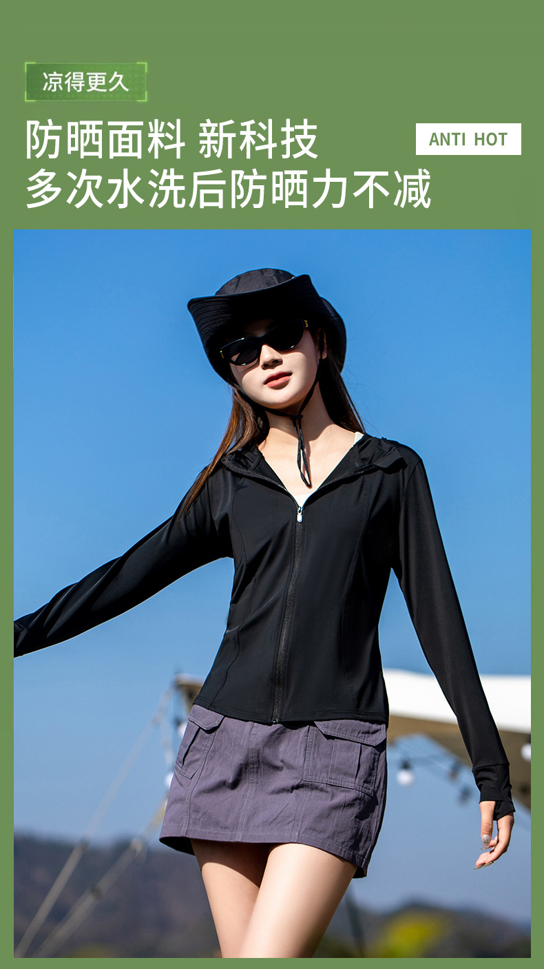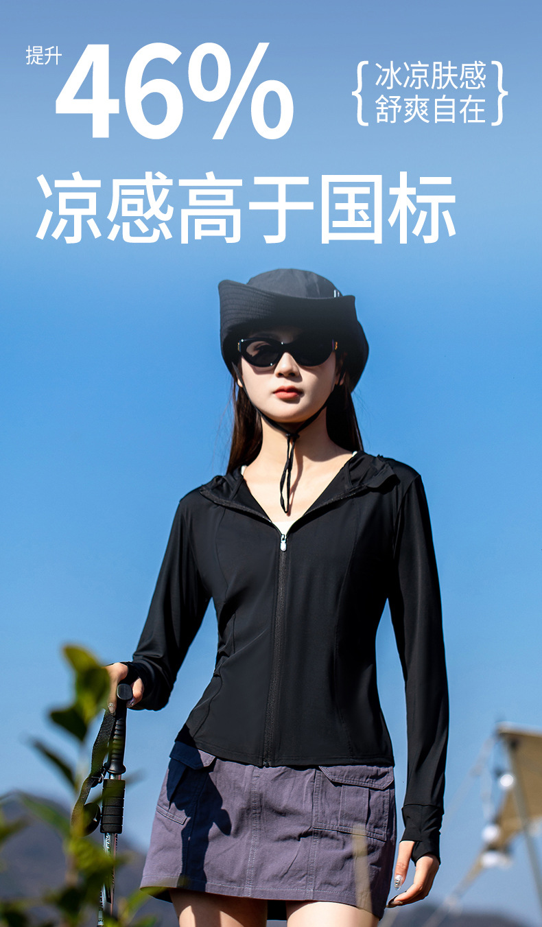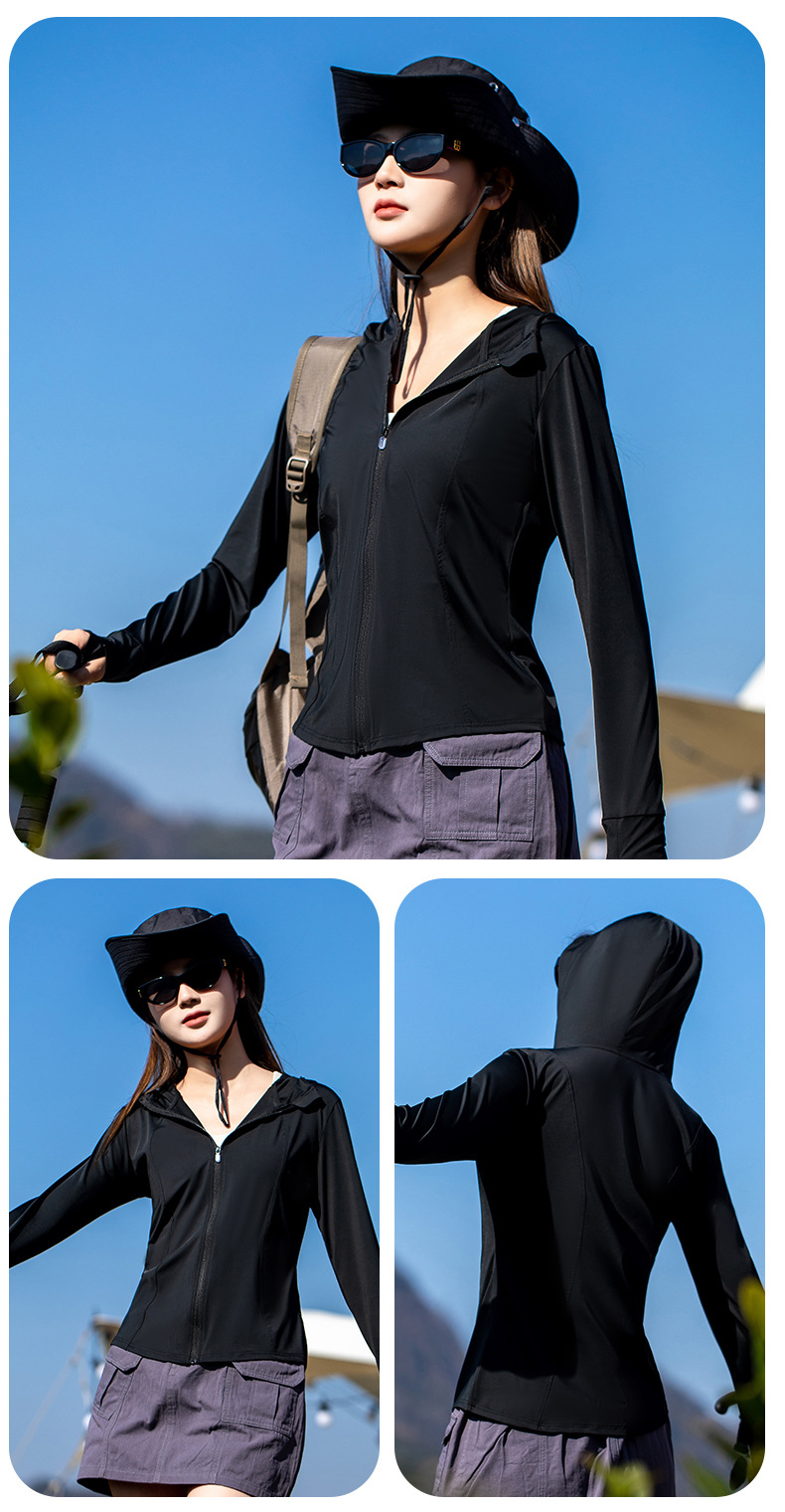 凉感0.25防晒衣UPF50+带帽长款修身显瘦防晒服透气冰丝皮肤衣女_HLY