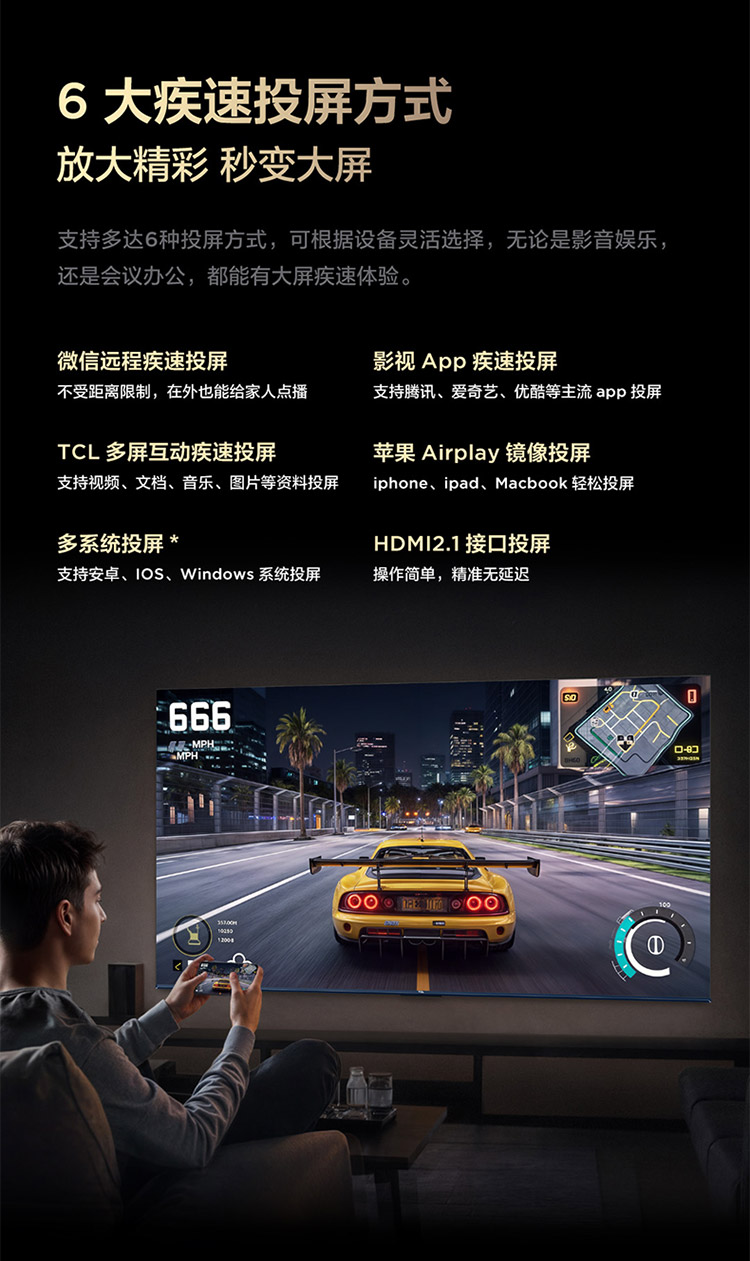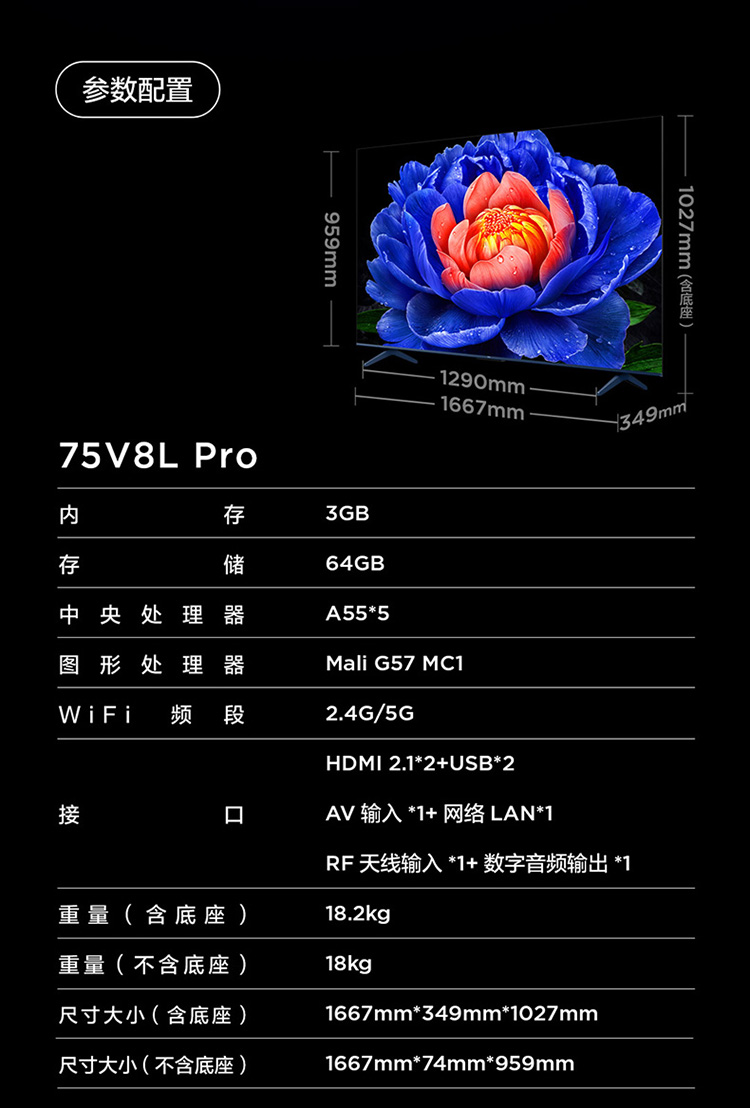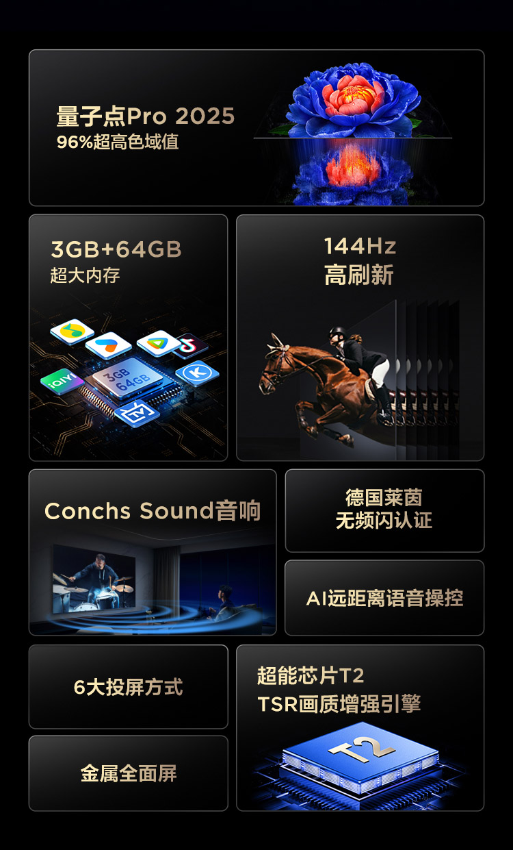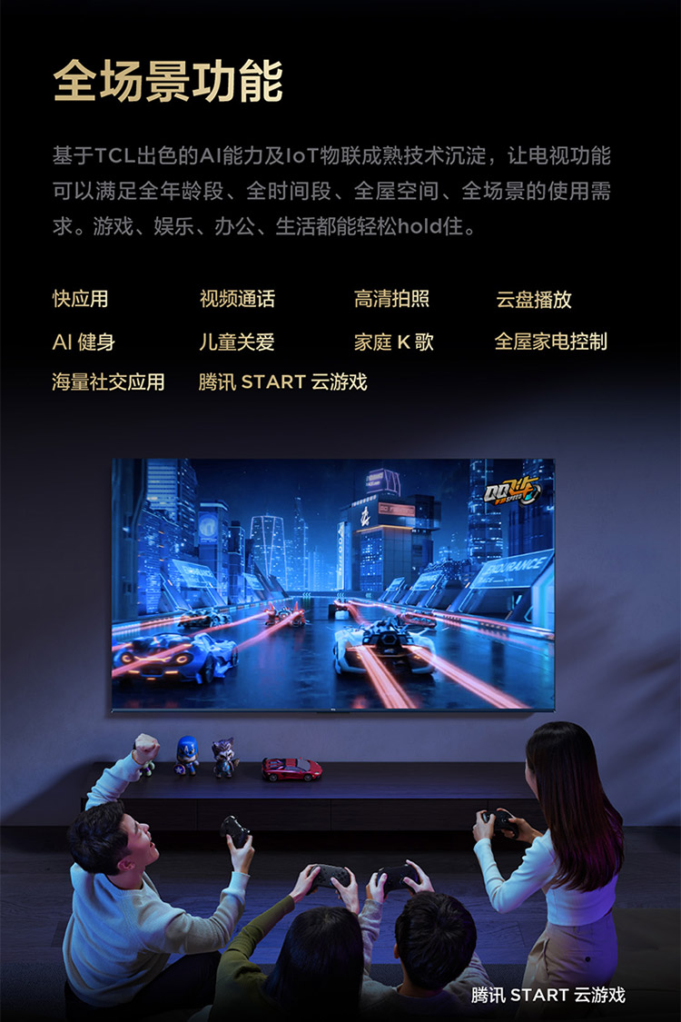 TCL电视 75V8L Pro 75英寸 144Hz QLED量子点 3GB+64GB大内存电视