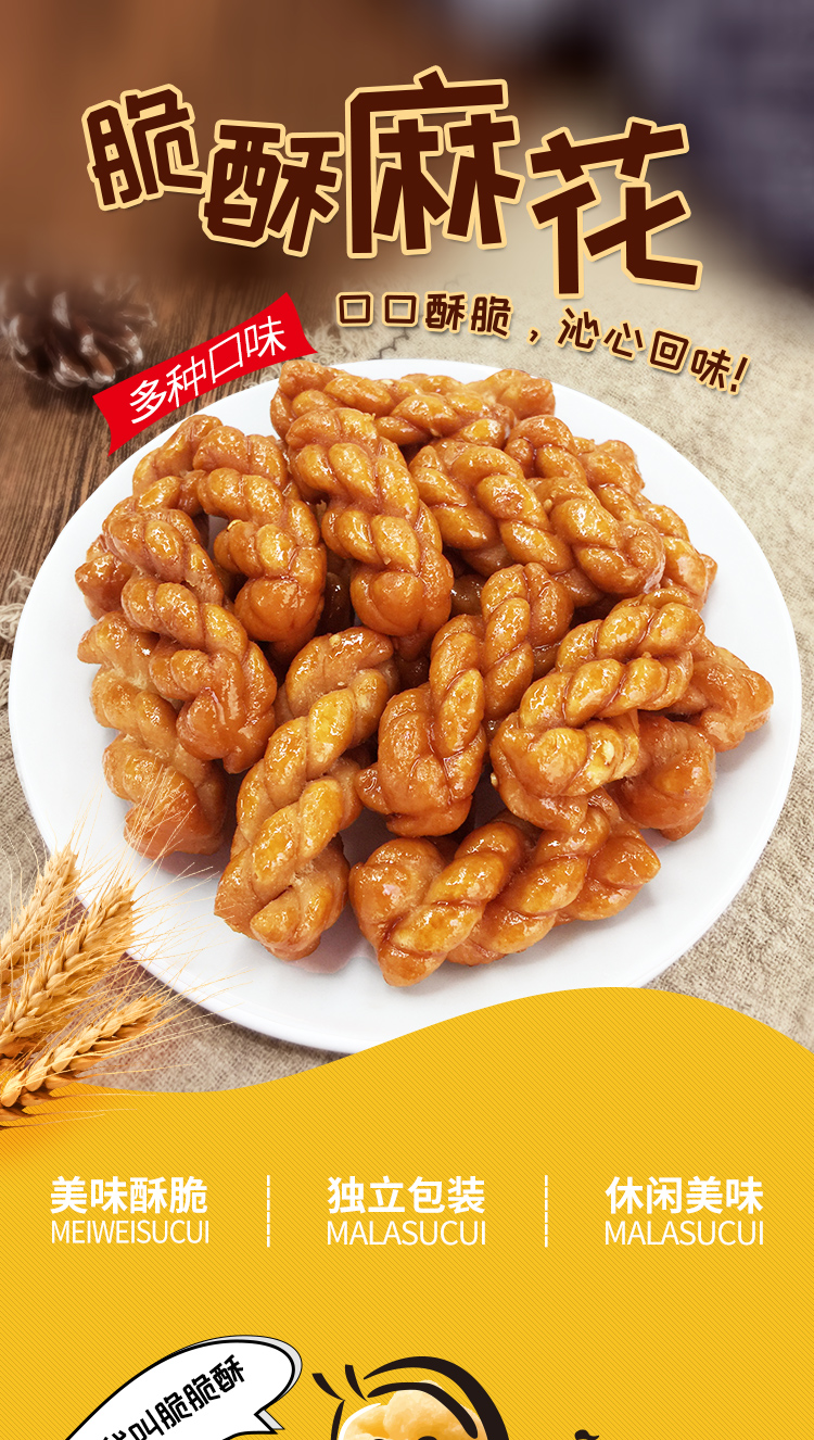 【超值3连包】德富祥小零食 252g麻花*3袋(无备注默认咸酥,口味可任选备注,