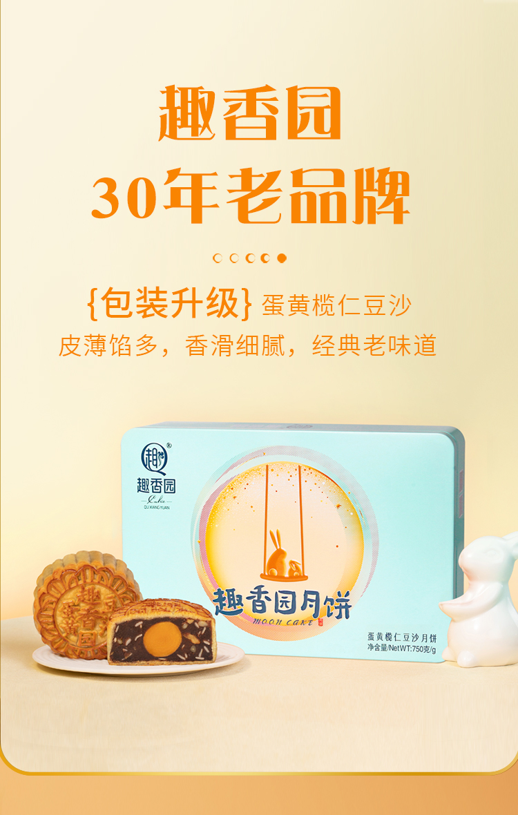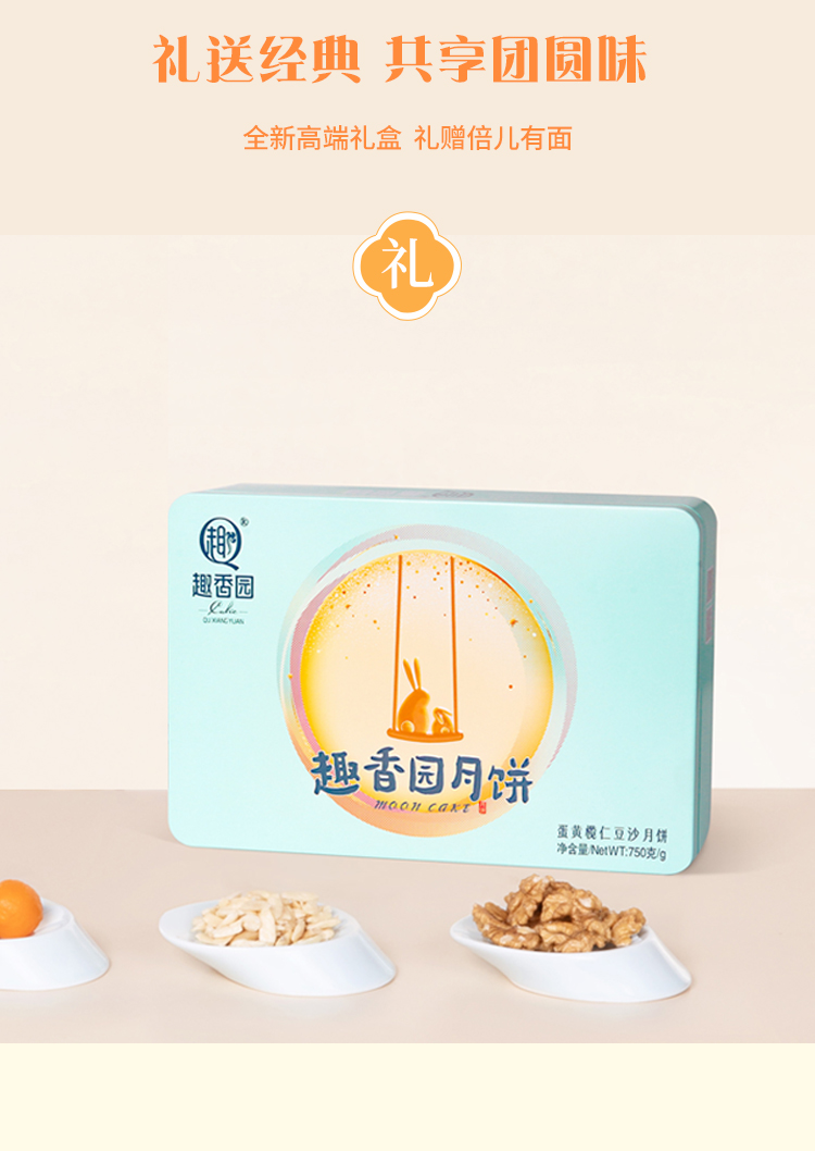 趣香园【蛋黄榄仁豆沙】月饼 中秋员工团购送礼 心系团圆