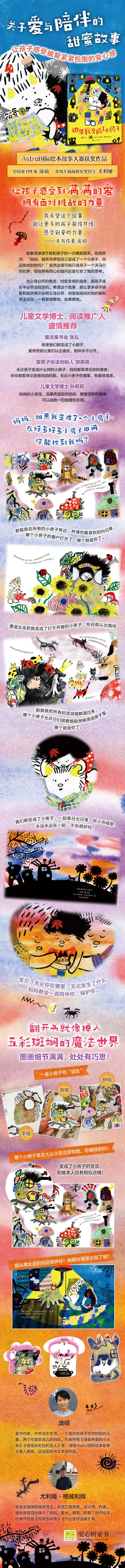 于是,我当晚便把他问我的这个问题,写成了《如果我变成了小房子》并且告诉他:;亲爱的宝贝,不管你变成了什么,妈妈都会找到你,也会永远陪伴你、爱着你。当然,我也希望这个故事,能让更多的孩子获得共情,感受到爱的力量,并且给孩子们的家长一点小小的启示,共同感受到温暖的力量。