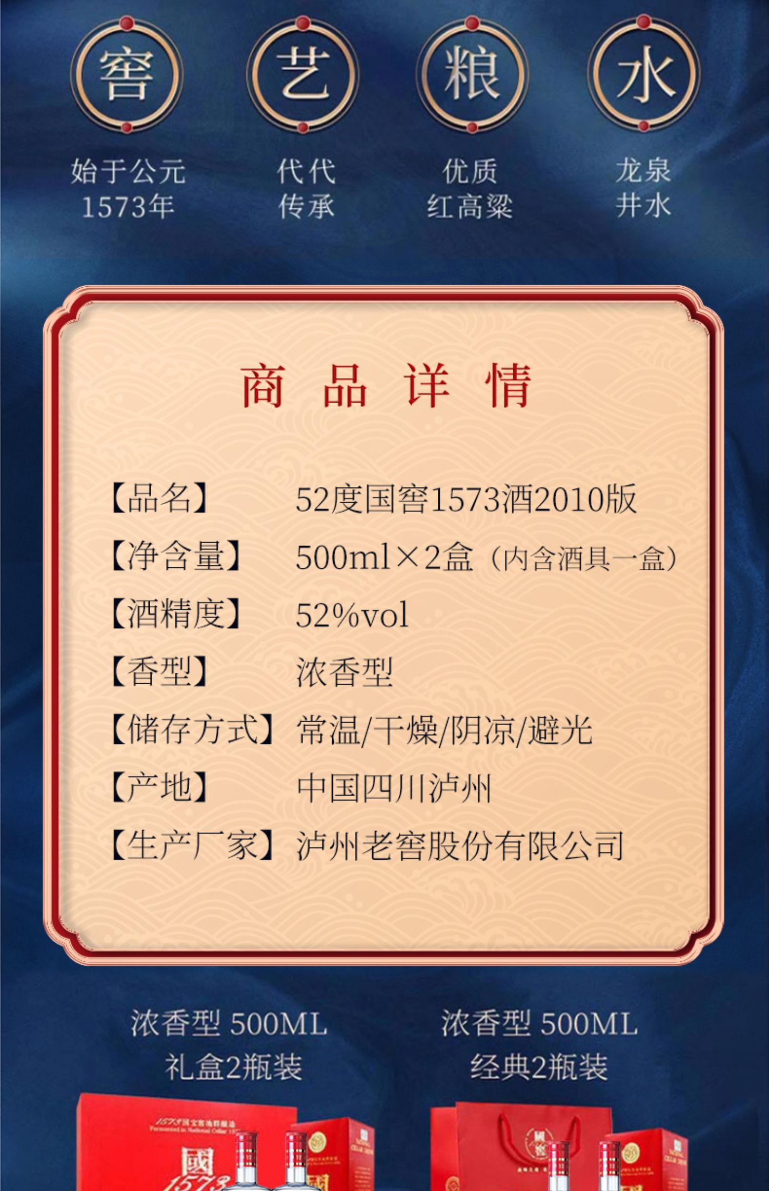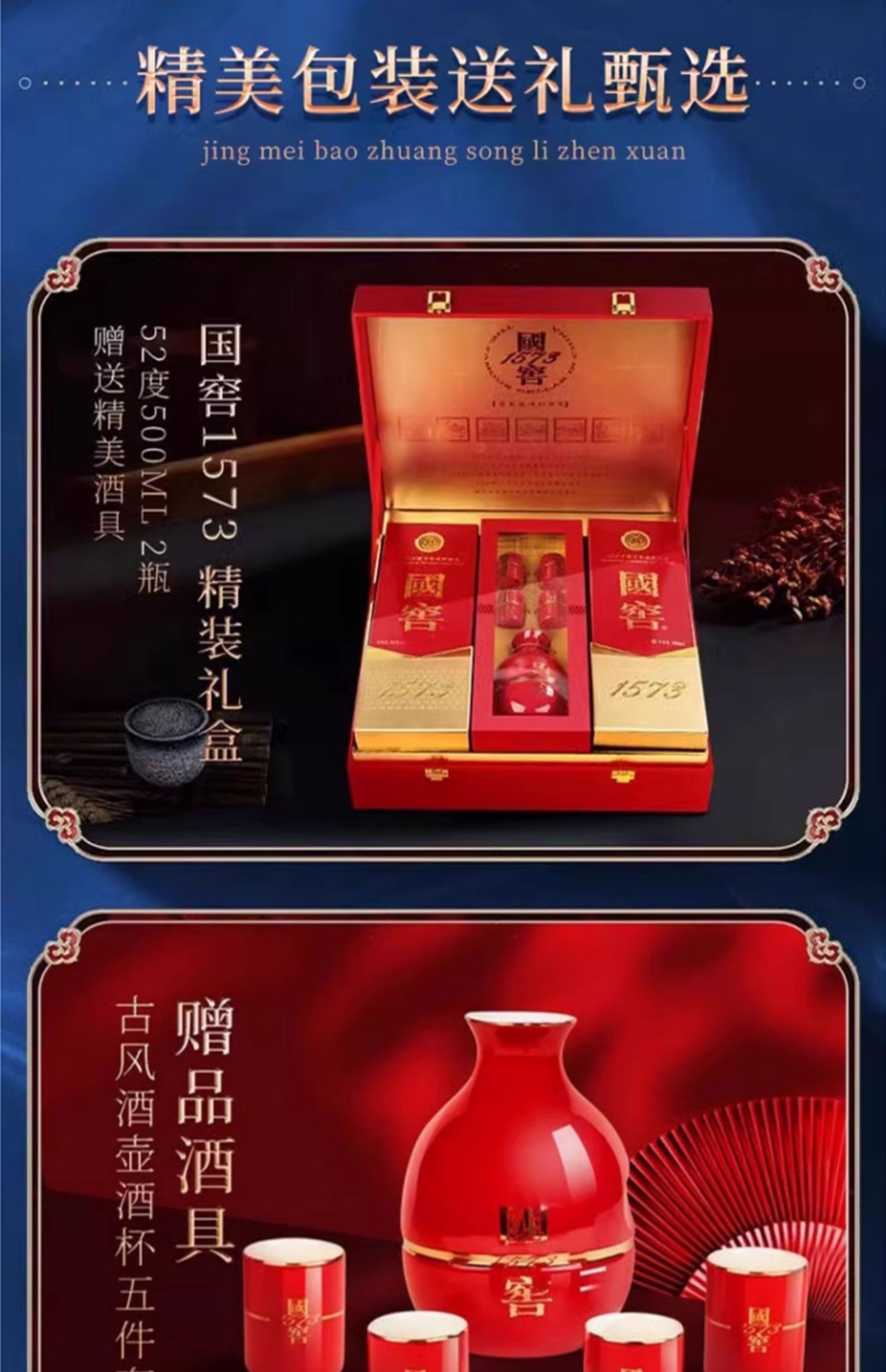 【酒厂直营】52度 国窖1573 500ml*2瓶装+红釉酒具礼盒 泸州老窖官方旗舰店