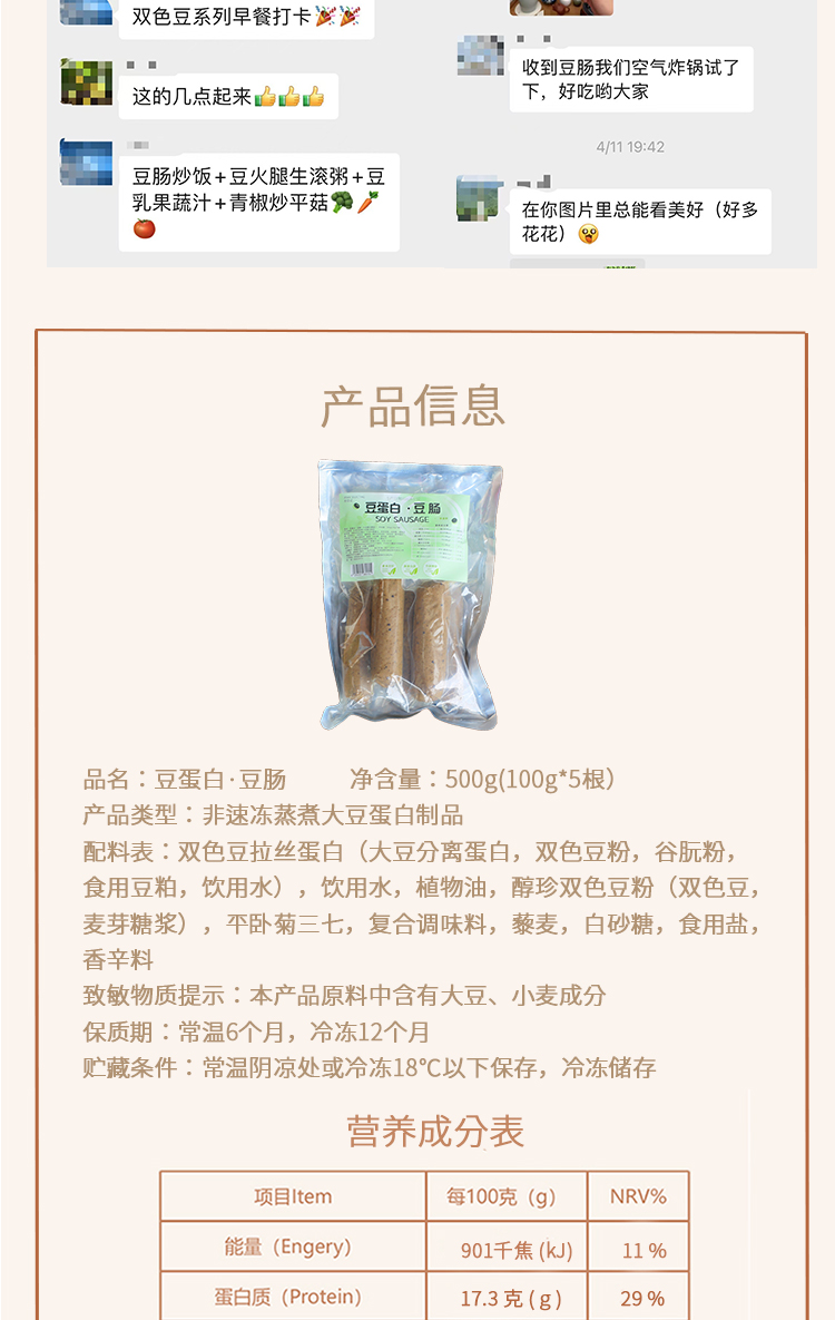 拾豆记 豆蛋白 即食豆肠 素肠 500g/袋【5根/袋】