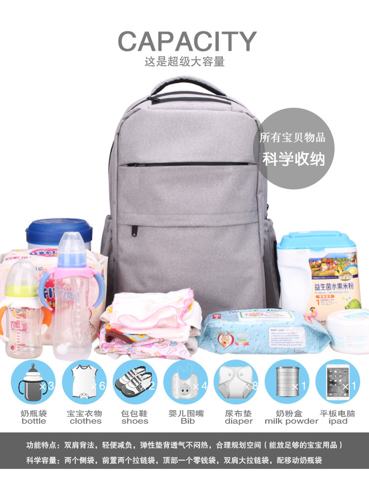 【母婴用品】*时尚欧美风妈咪包 多功能大容量双肩妈妈包休闲母婴妈咪背包