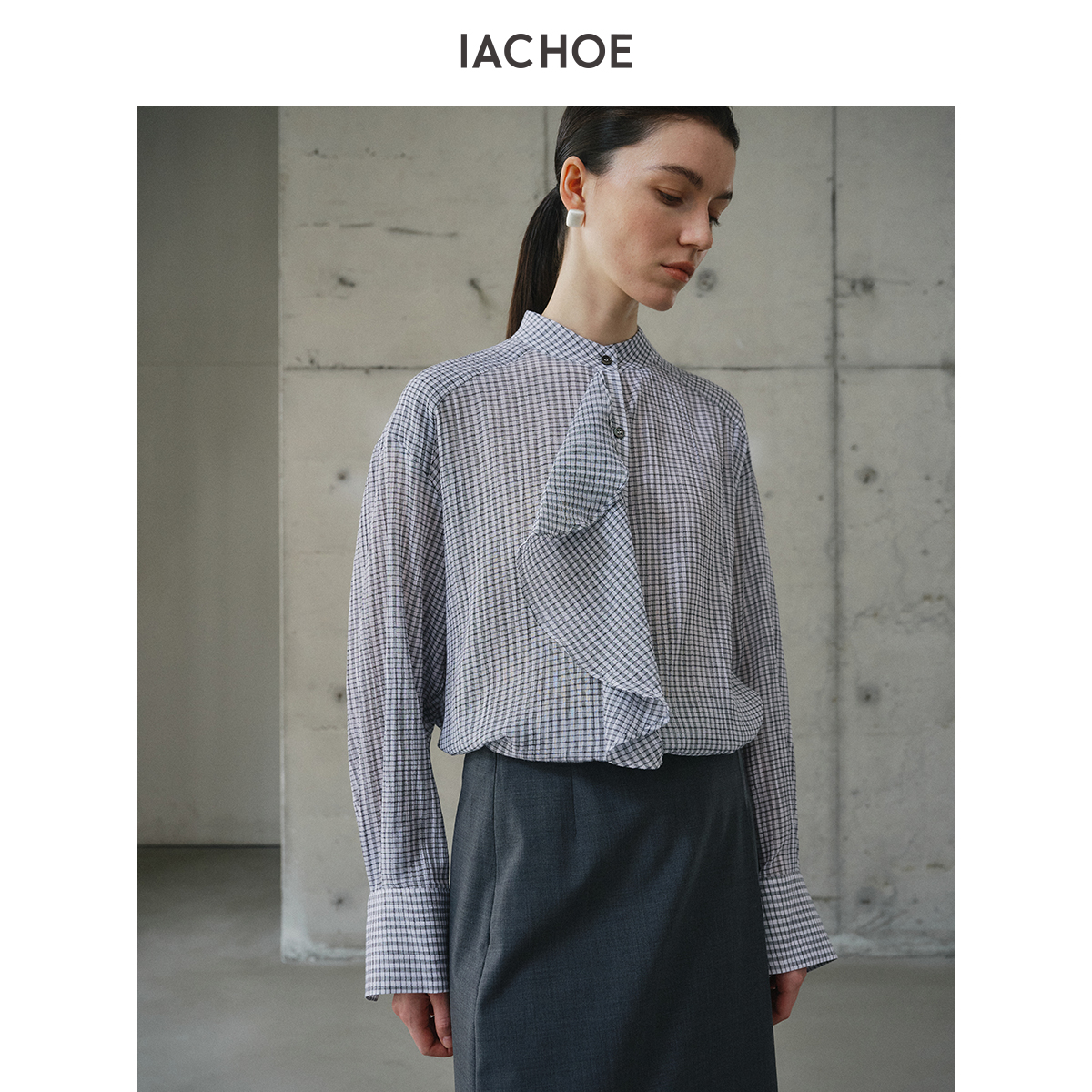 棉仓3621504019-IACHOE花边门襟衬衫