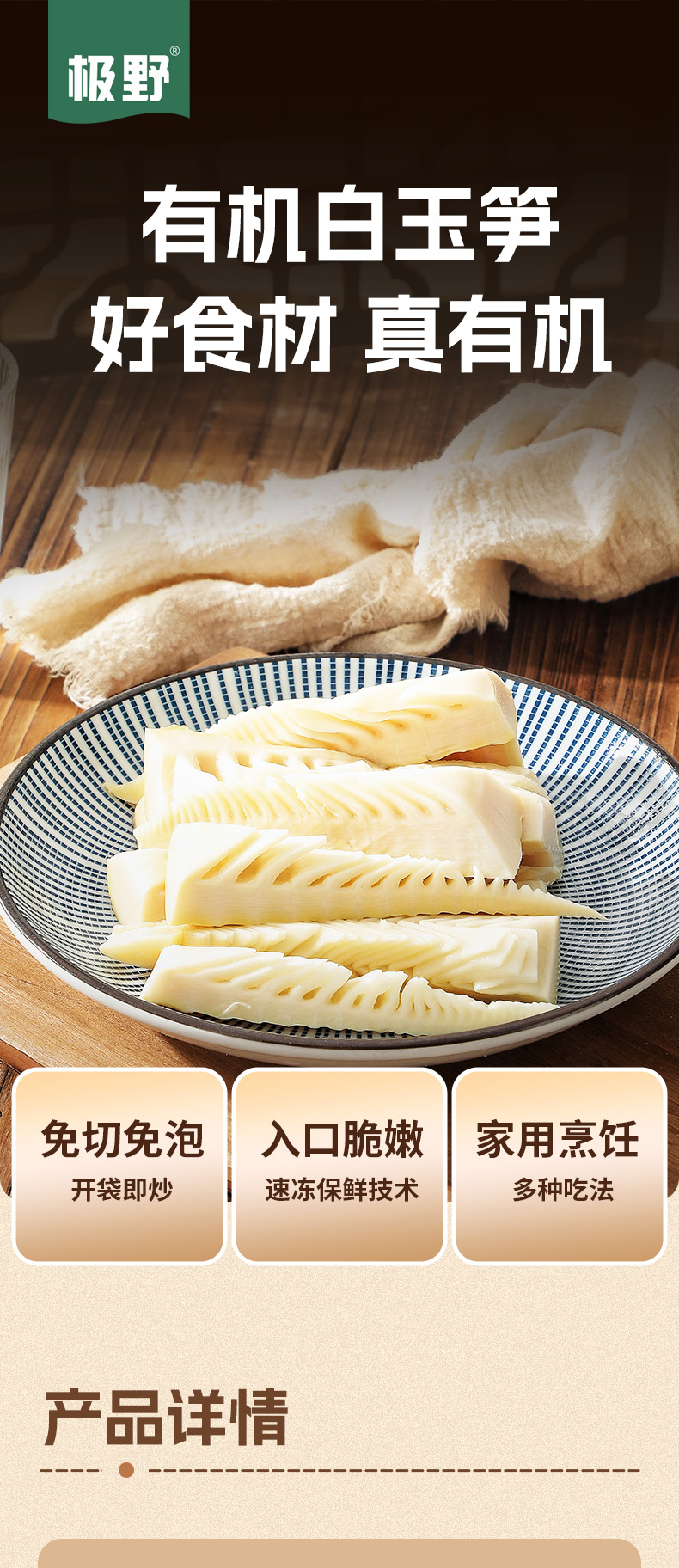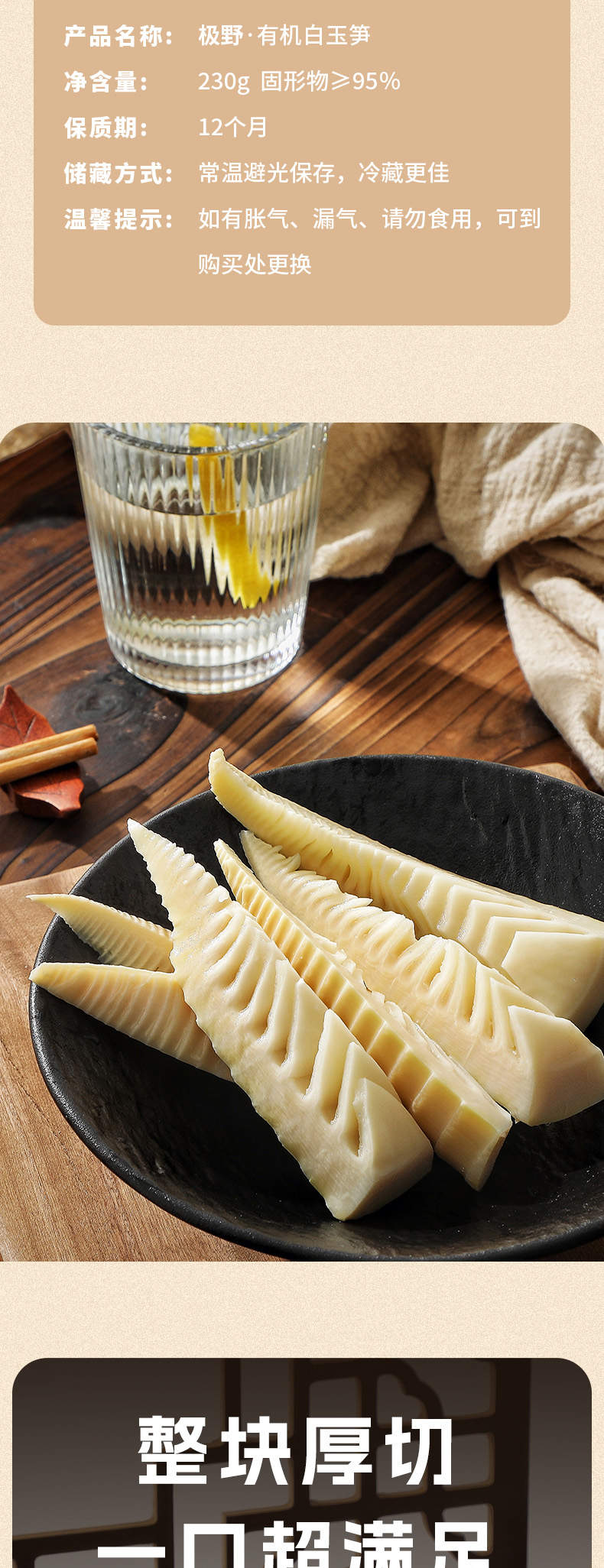 极野有机白玉笋 脆爽嫩春水笋尖深山竹笋火锅涮菜230g/袋
