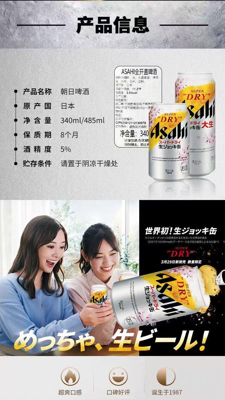 日本朝日 全开盖温感自发泡生啤啤酒 340ml