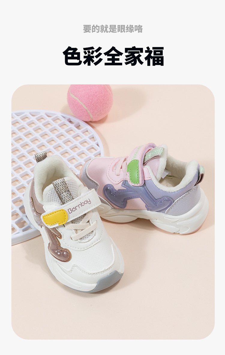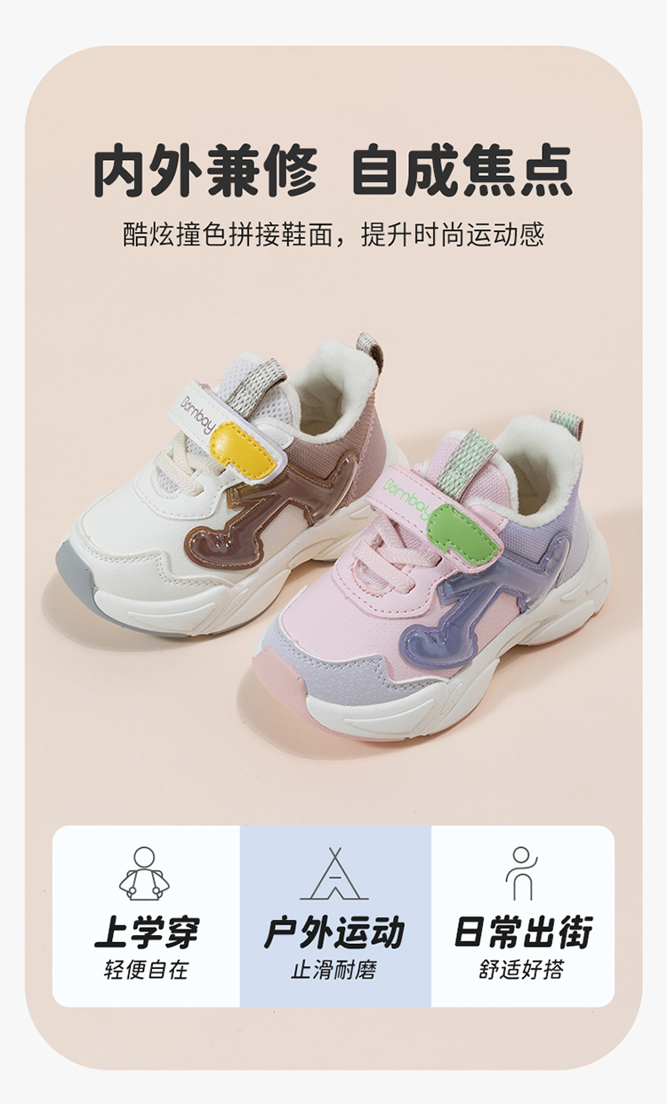 贝贝怡童鞋男女童运动鞋秋冬季新款透气休闲鞋百搭加绒老爹鞋ZB4CX005