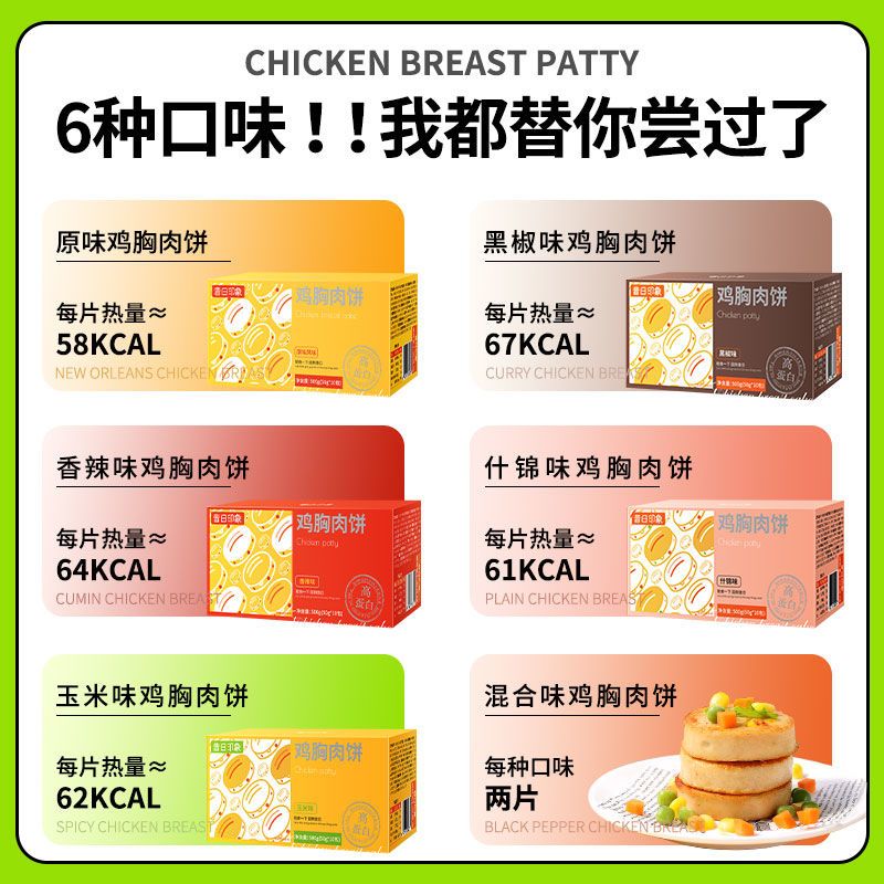 鸡胸肉饼蔬菜饼即食代餐低脂轻食健身高蛋白饱腹鸡肉饼零食