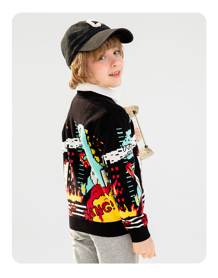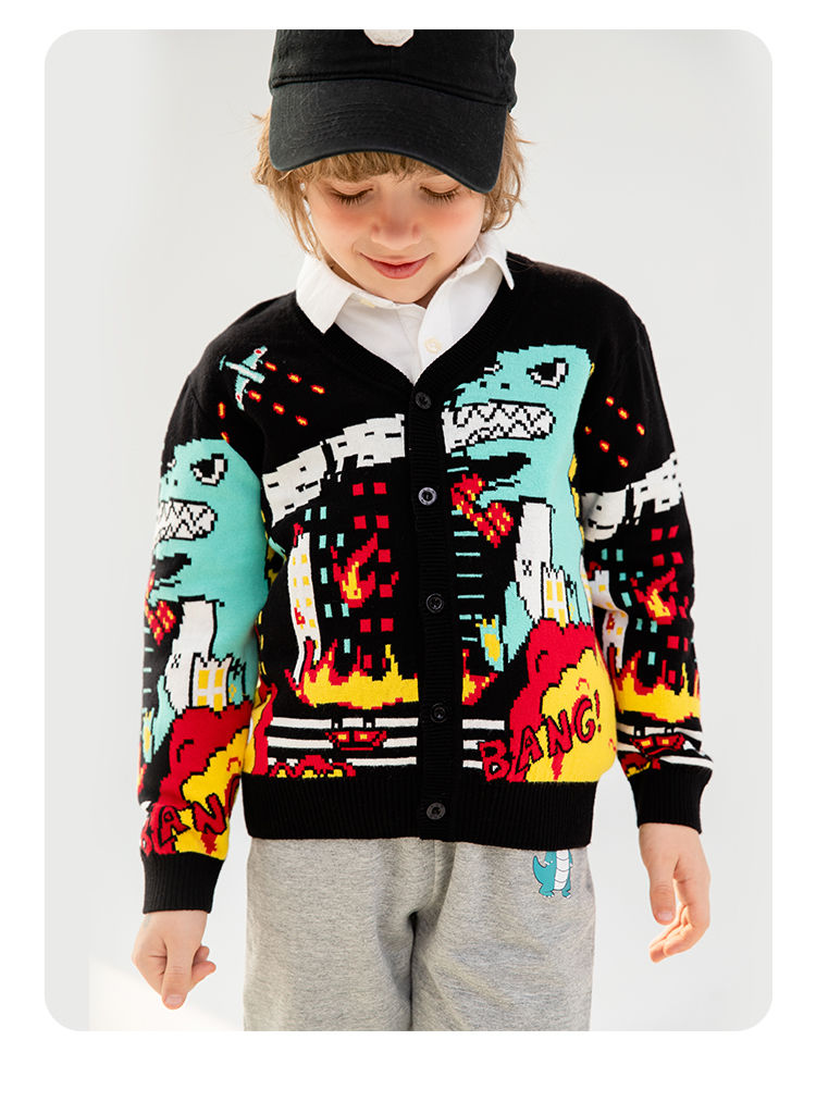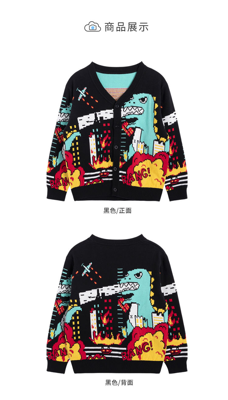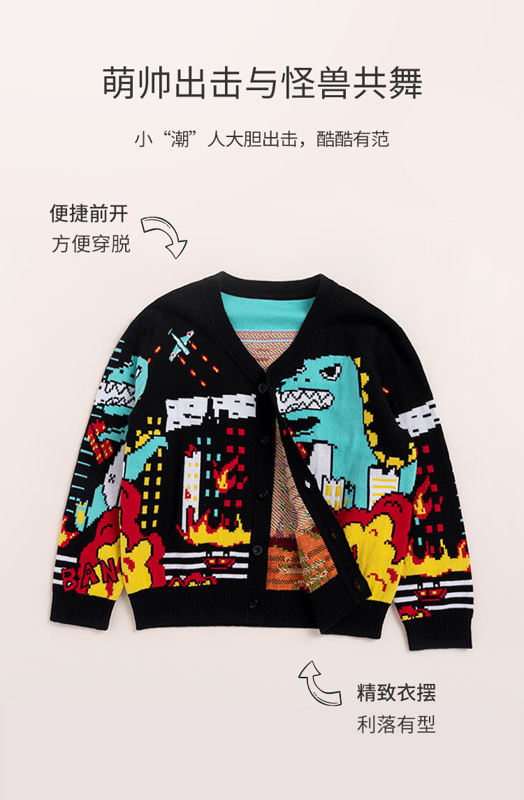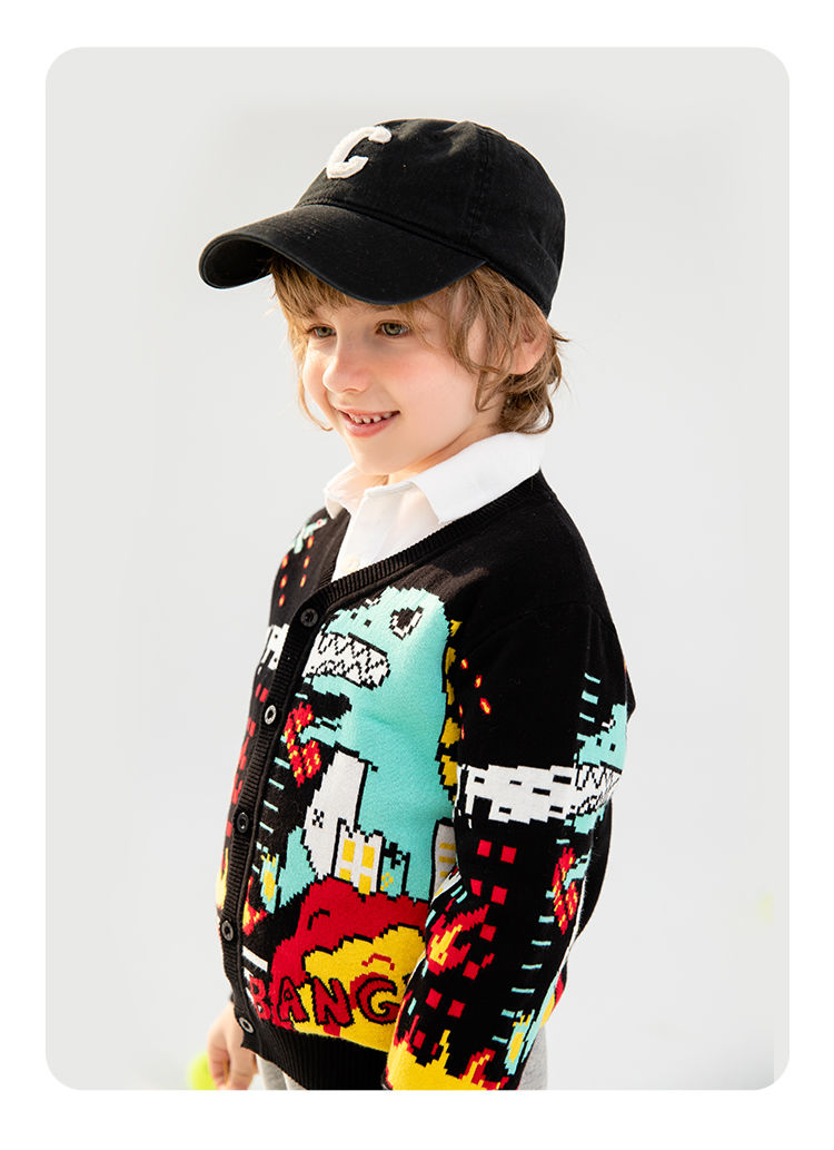 贝贝怡童装男童卡通针织开衫舒适保暖新款宝宝卡通上衣外套爆款