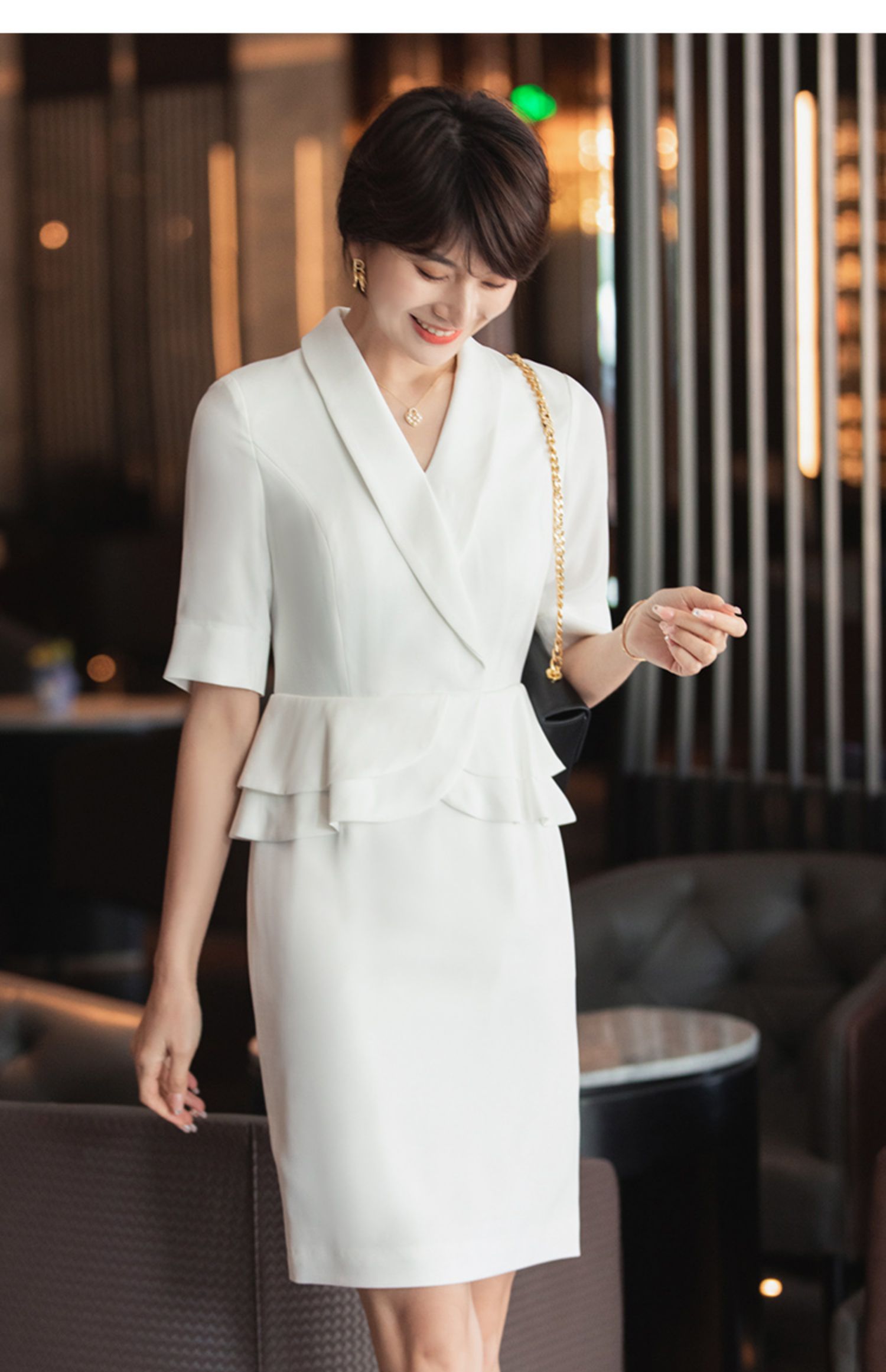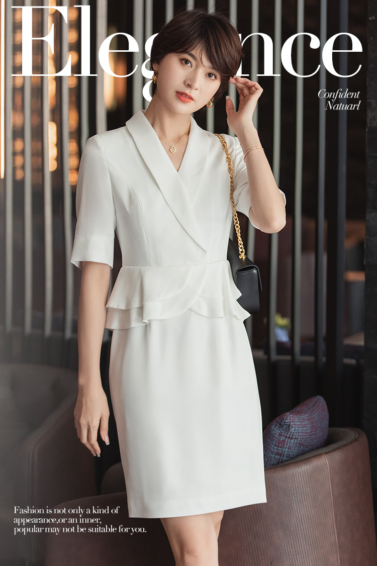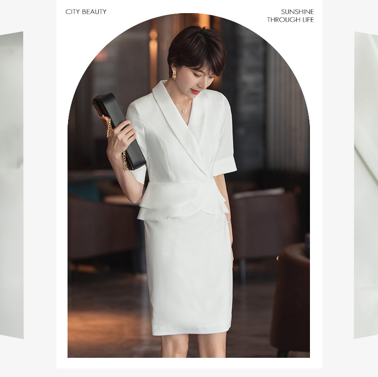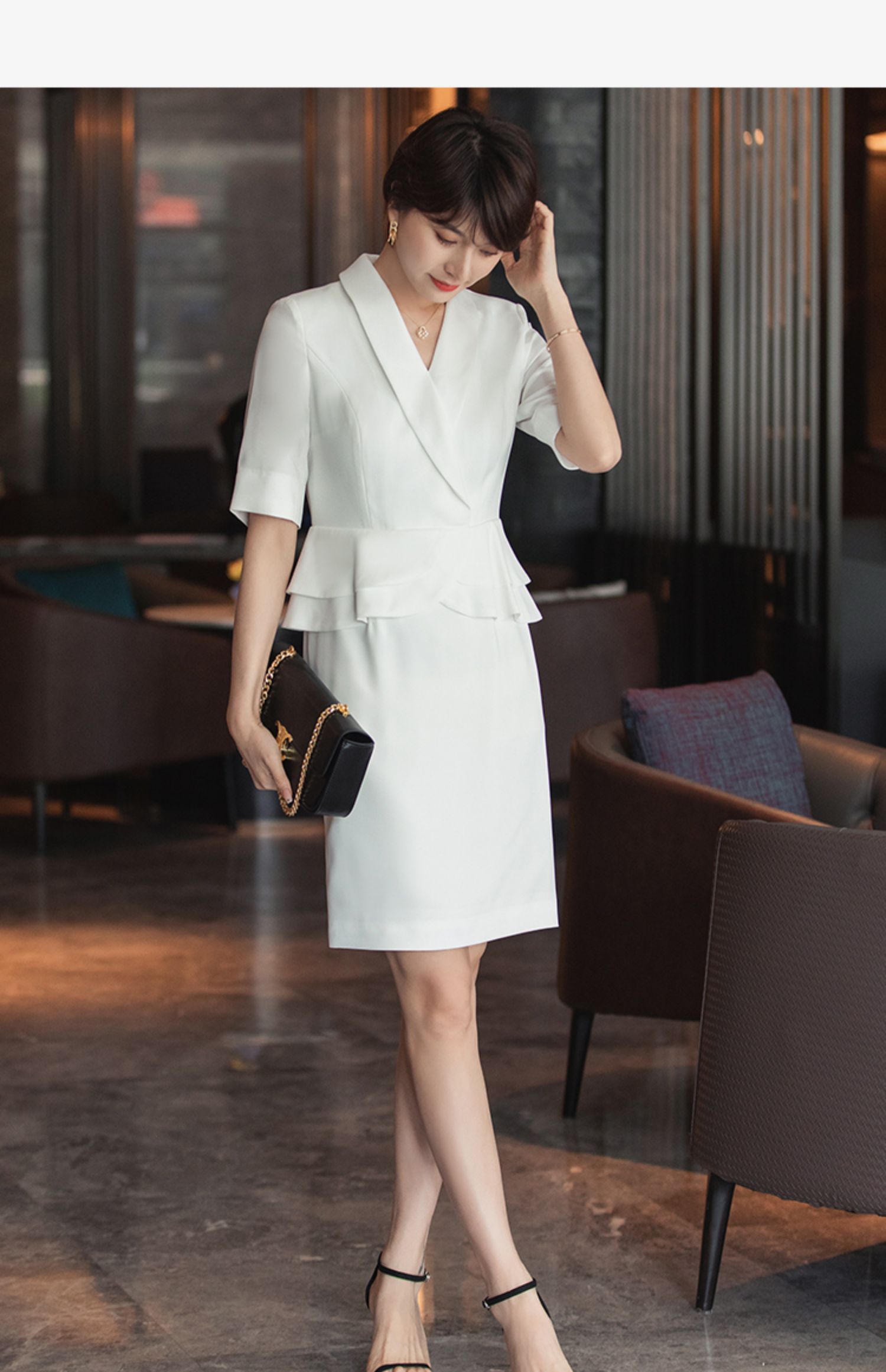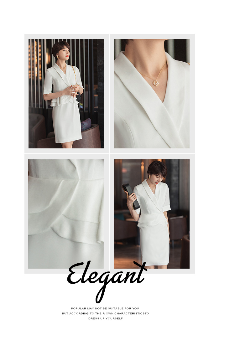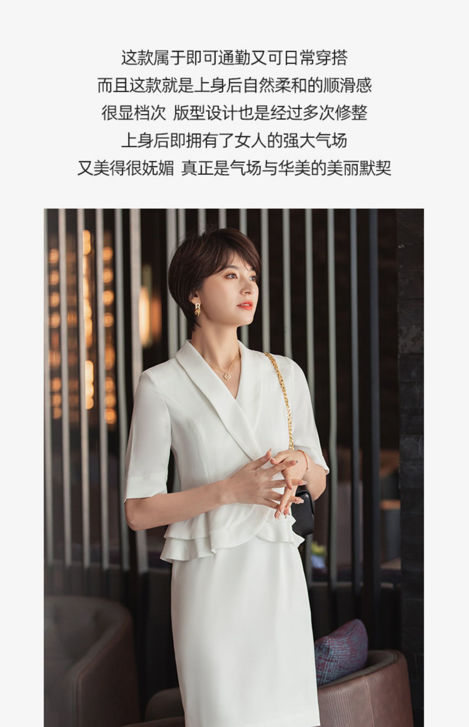 2022年夏季新款气质白色连衣裙女短袖高端职业商务西装裙