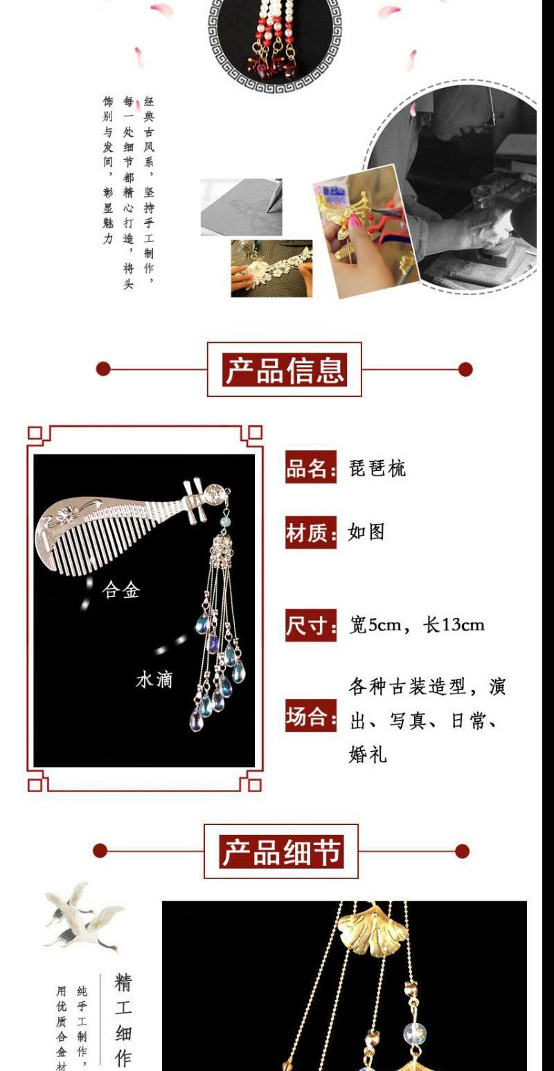 汉服发饰琵琶发梳流苏头饰明制发簪古风饰品唐风古装簪子