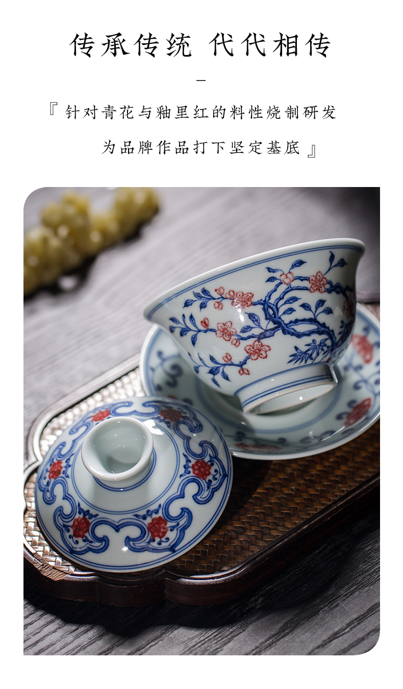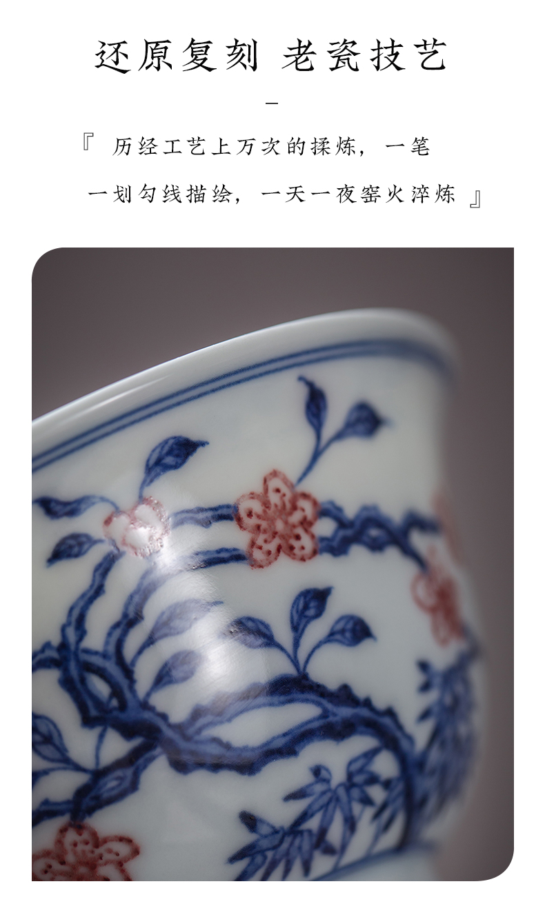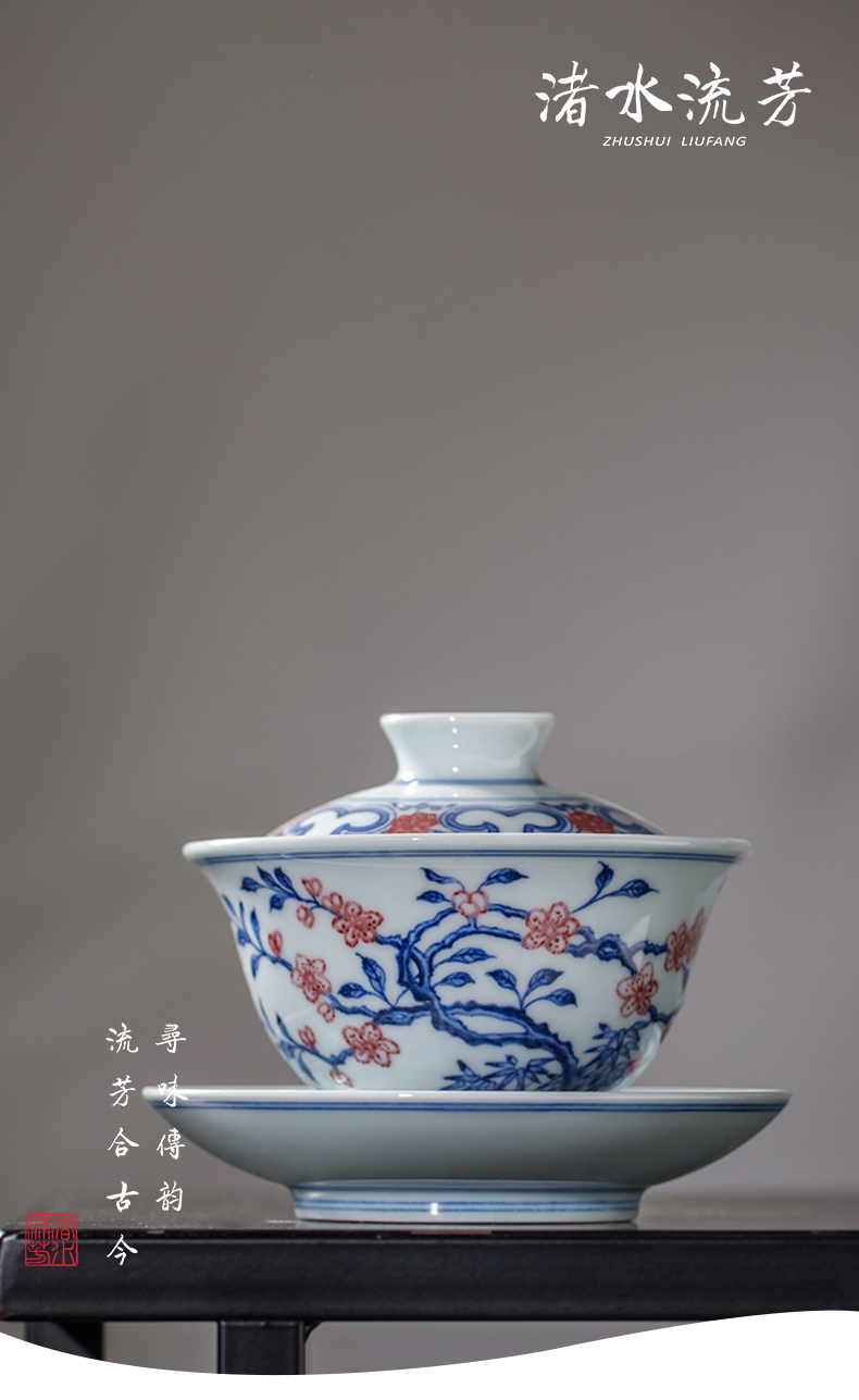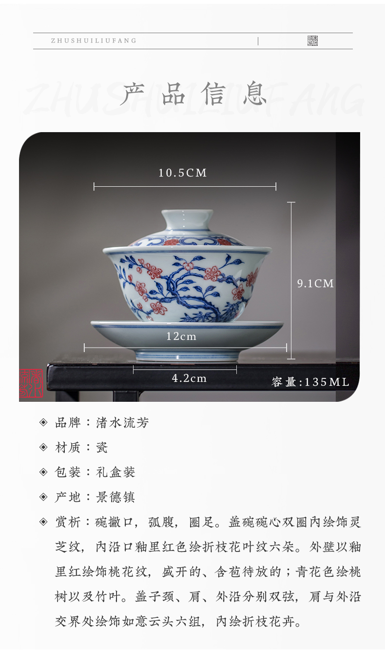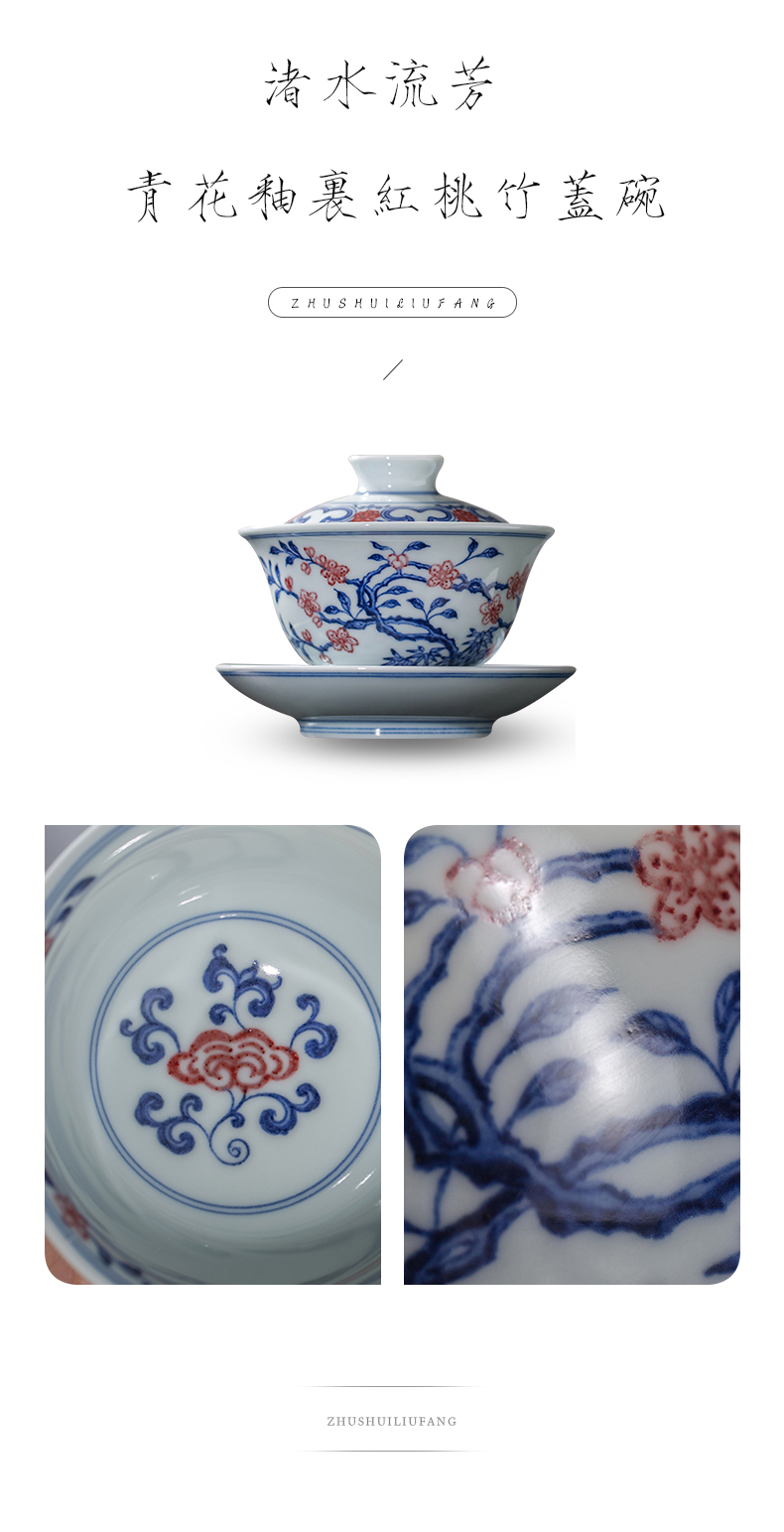 渚水流芳青花釉里红桃竹盖碗(缺货)