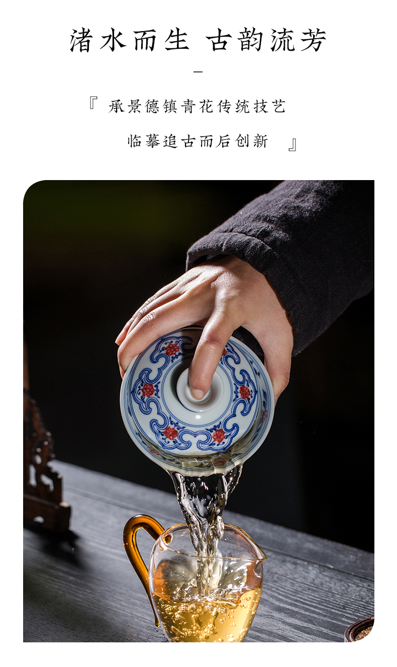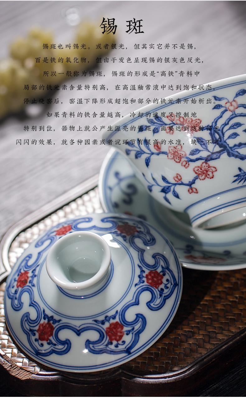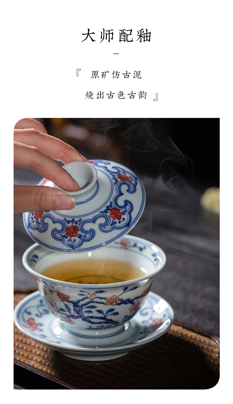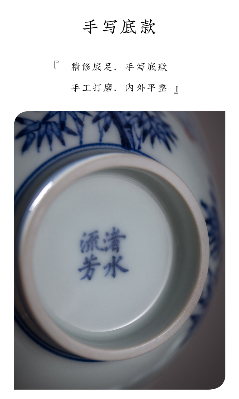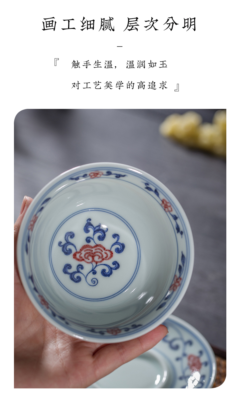 渚水流芳青花釉里红桃竹盖碗(缺货)