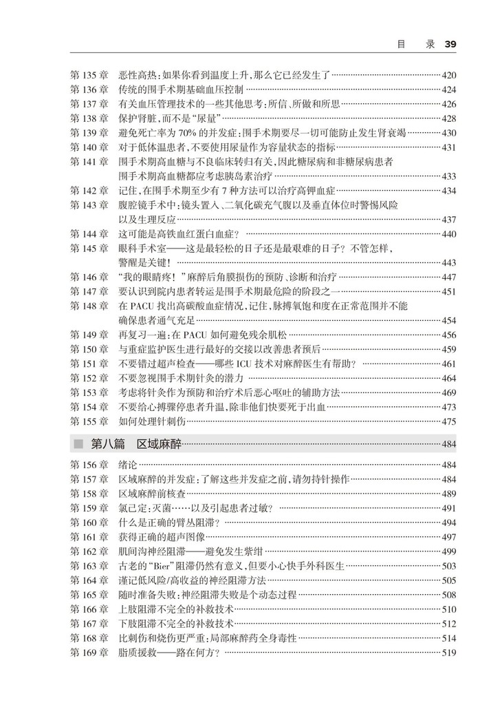 ◈ 包含294种临床情况的病因、诊断和治疗,全面涵盖整个麻醉学领域,分享气道管理、有创监测和区域麻醉等技术经验,包括从儿科到老年医学科的所有患者。