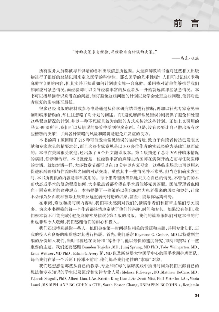 本书是资深麻醉师的经验心得集锦,意在使读者从中获得启迪,弥补自身因临床环境限制或年资有限所致的不足。每一个标题都是一条基于循证基础的实战经验,内容涵盖基本的操作技术以及重点手术类型麻醉管理中容易“发生错误”的内容,一章解决一个关键问题,把盲点与痛点各个击破。