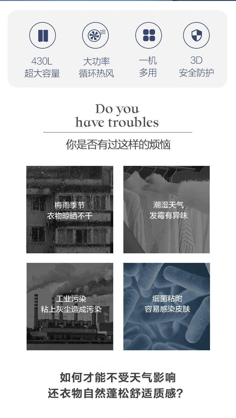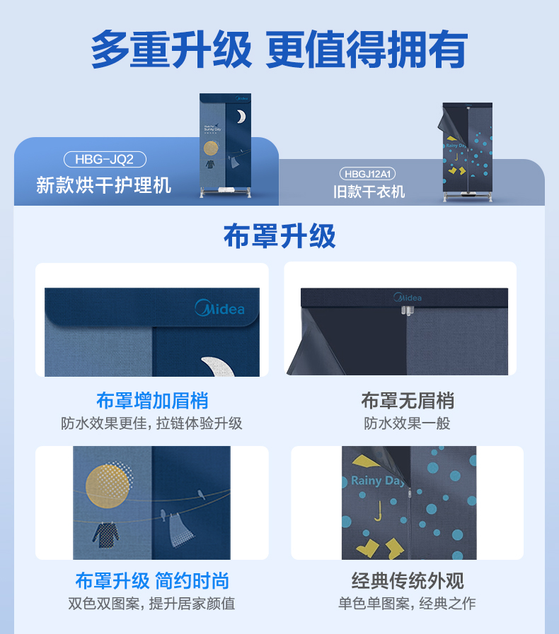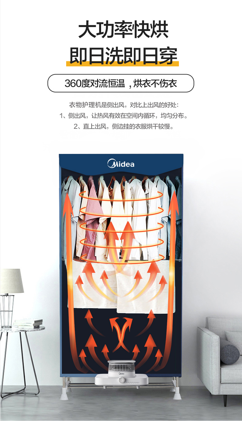 美的(Midea)HBG-JQ2干衣机烘衣机婴幼服装20斤烘干双层430升大容量衣柜180min定时