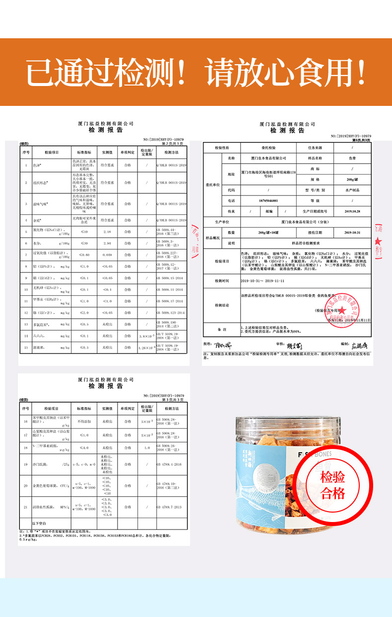 鼓浪屿新四海香酥鱼骨粒6罐厦门特产脆鱼骨酥排即食海鲜儿童零食