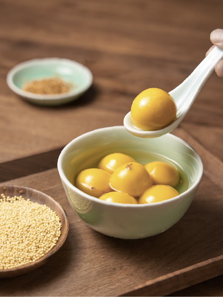 大黄米汤圆:糯米、水、植物油、黑芝麻、南瓜、白砂糖、大黄米、水磨糯米粉、复配增稠剂(瓜尔胶、黄原胶、羧甲基纤维素钠)β-胡萝卜素、糖桂花(桂花、白砂糖)食用盐。