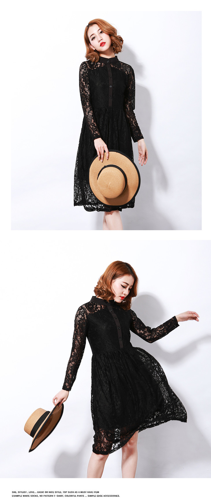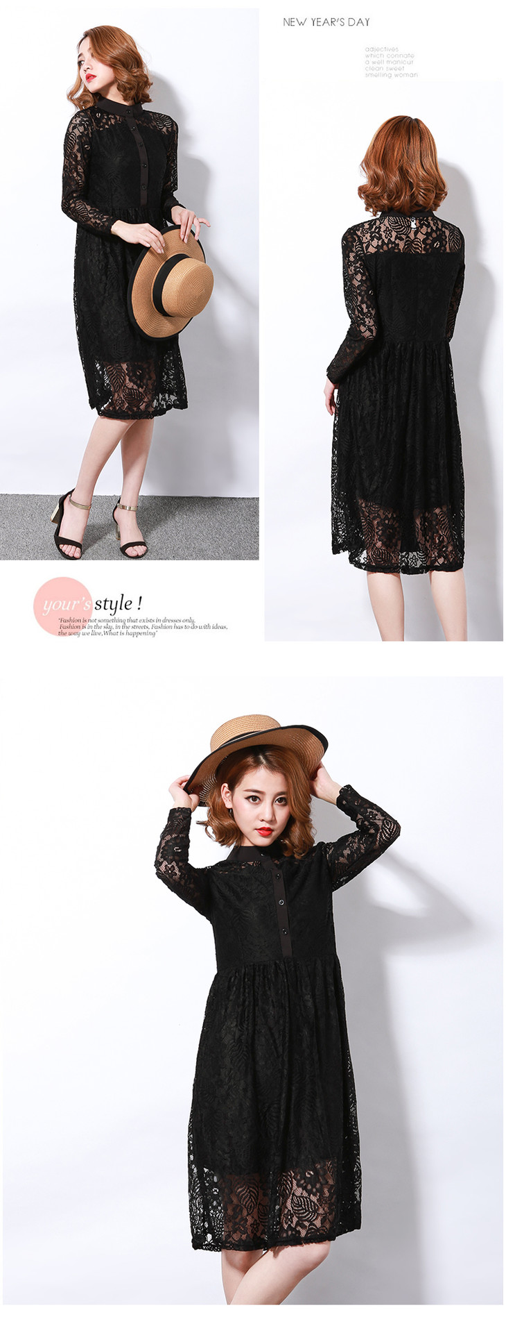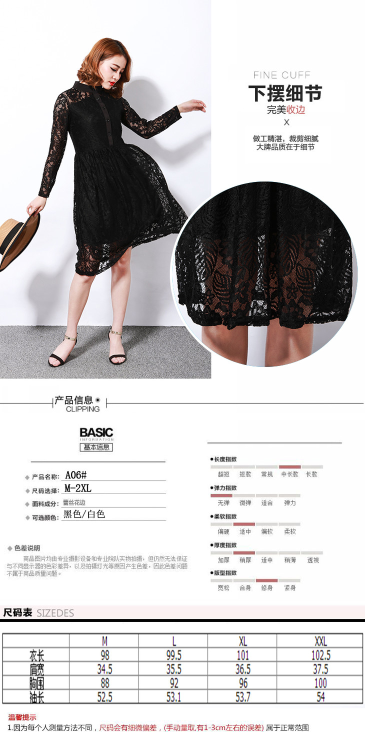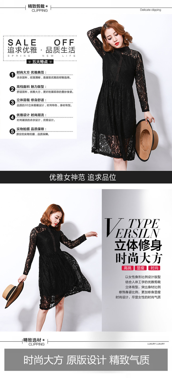 【服饰鞋包】欧洲站 秋季新款时尚显瘦蕾丝衬衣连衣裙 大码蕾丝连衣裙