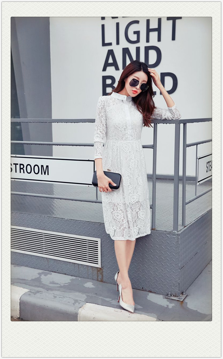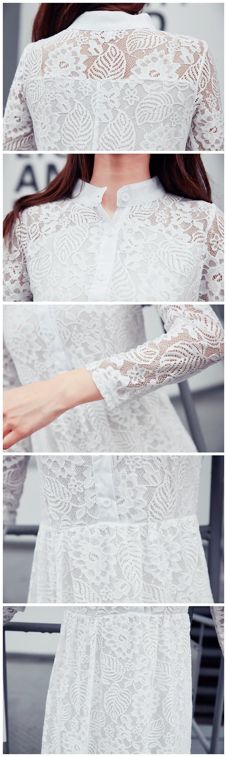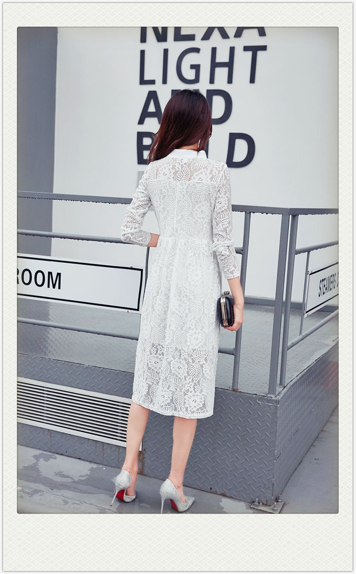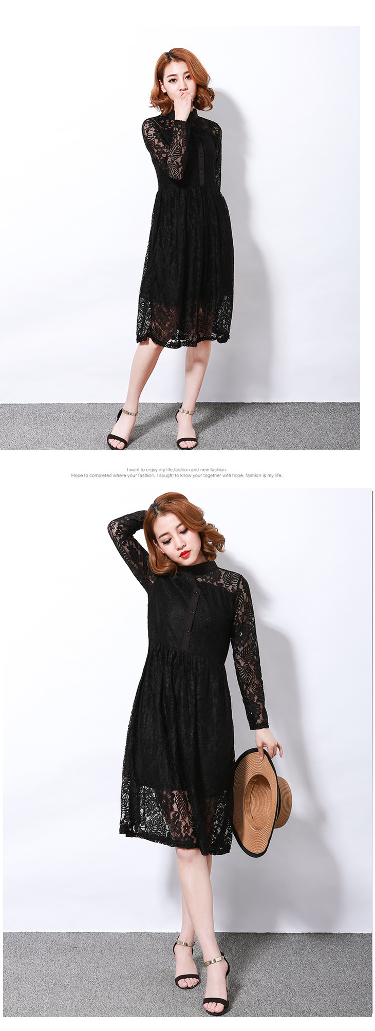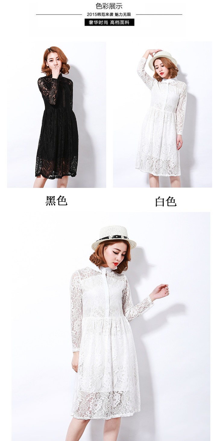 【服饰鞋包】欧洲站 秋季新款时尚显瘦蕾丝衬衣连衣裙 大码蕾丝连衣裙