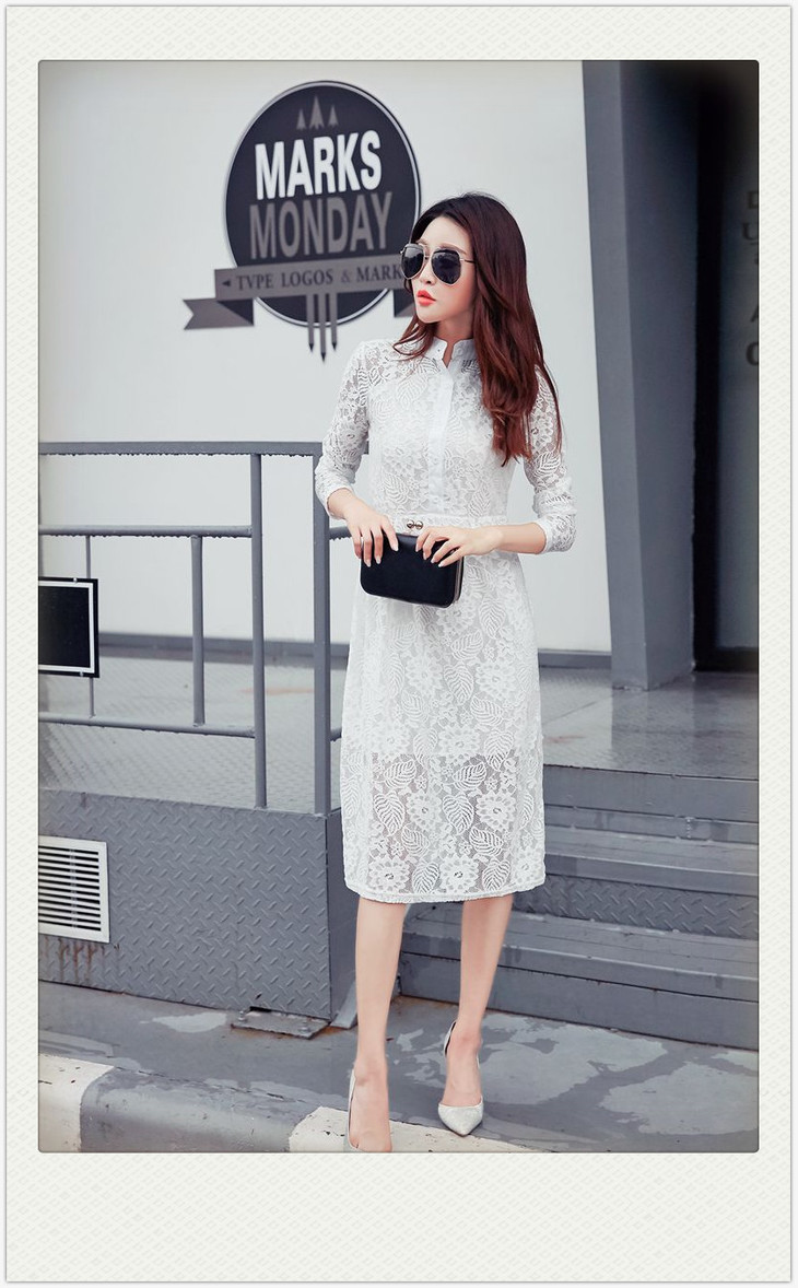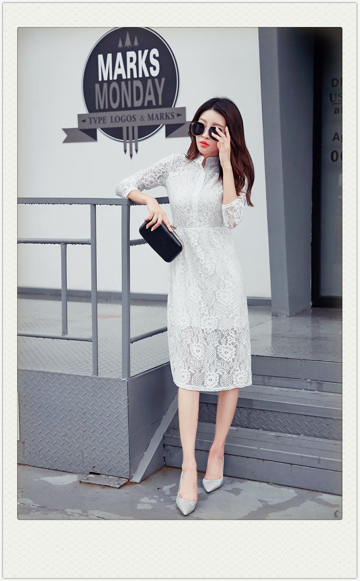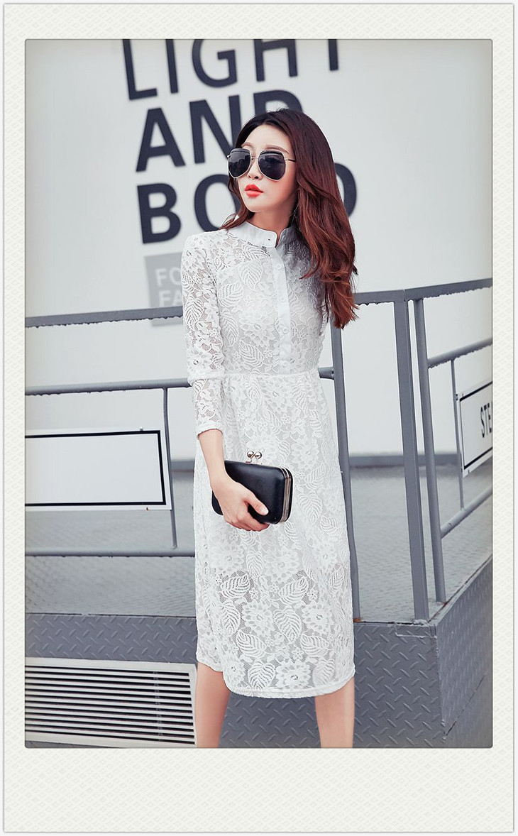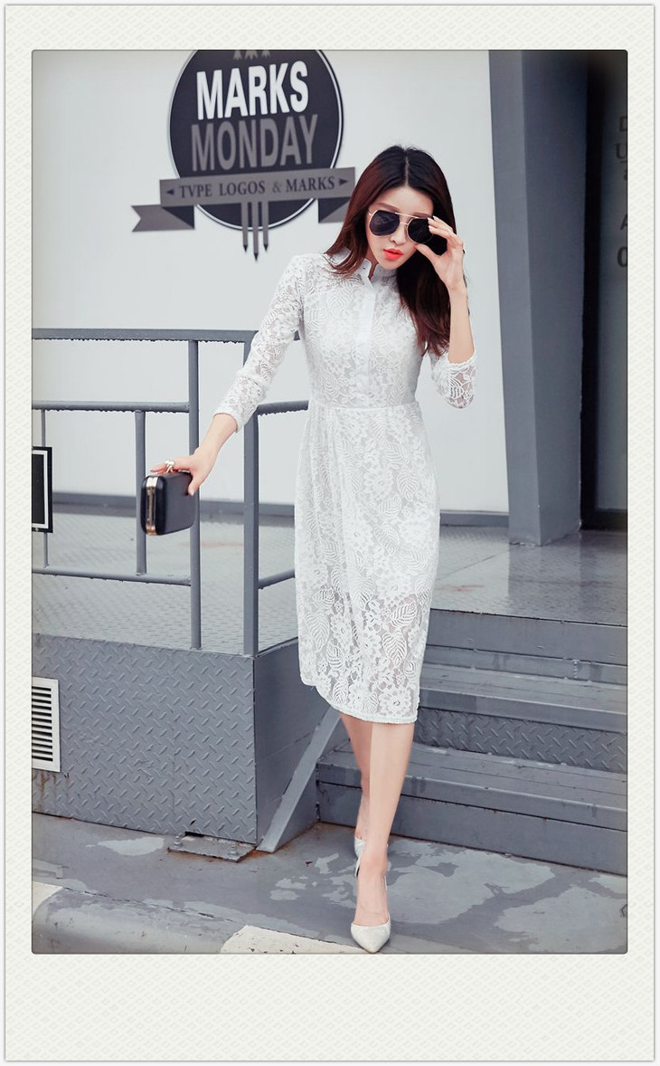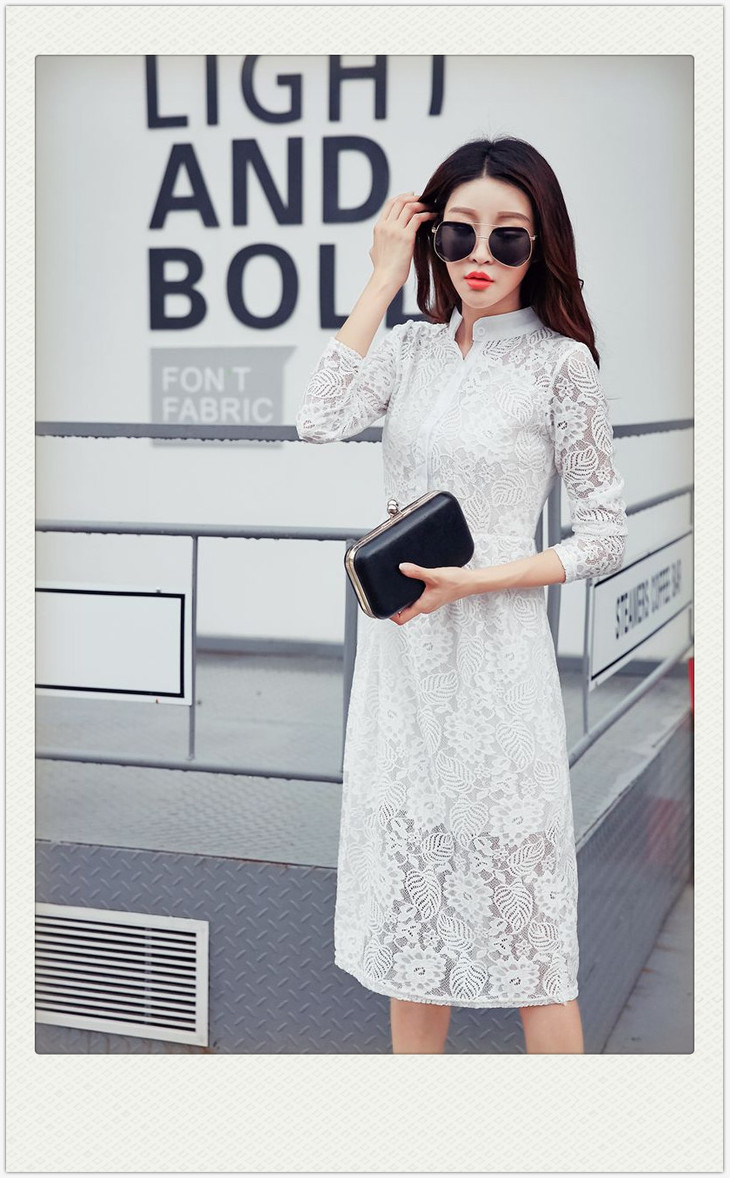 【服饰鞋包】欧洲站 秋季新款时尚显瘦蕾丝衬衣连衣裙 大码蕾丝连衣裙
