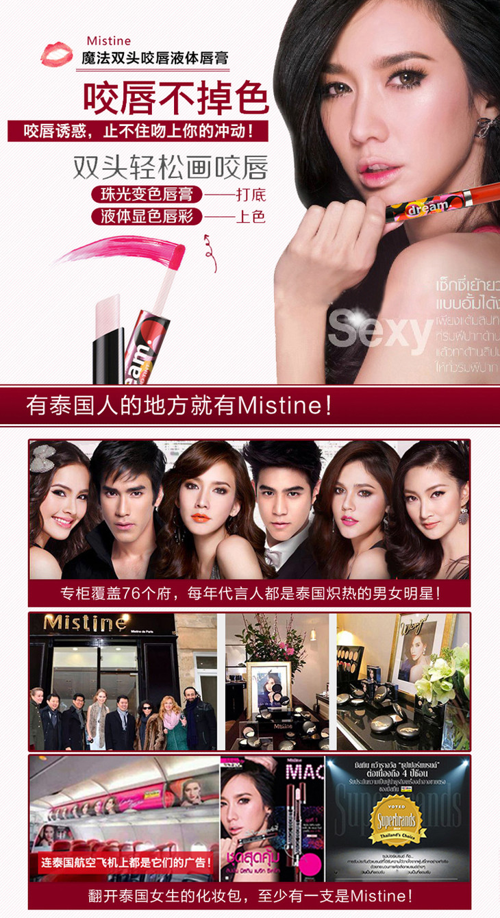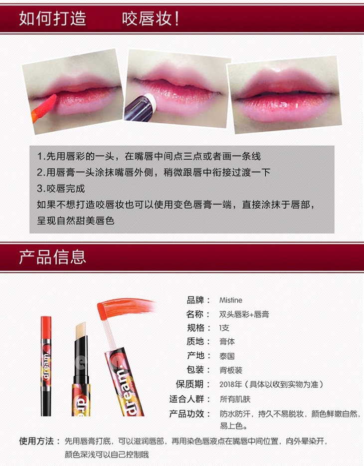【唇彩,咬唇】。mistine双头双色咬唇唇彩口红不脱色不沾杯口红唇釉染唇液
