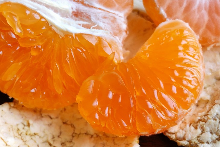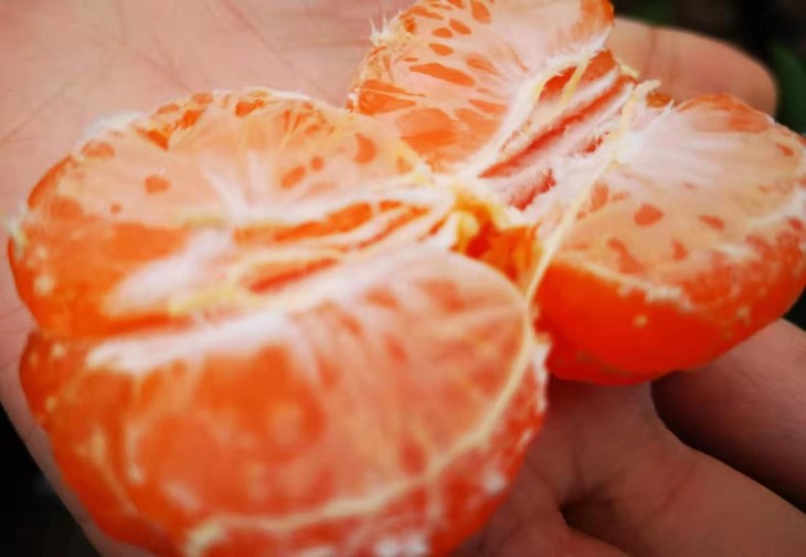 润口:蜜桔无渣,口感细腻,润口。经过长时间的风吹雨打日晒后,桔子的内部早已糖化。完全成熟的桔子,桔瓣上的膜入口即化,丝毫不留渣。