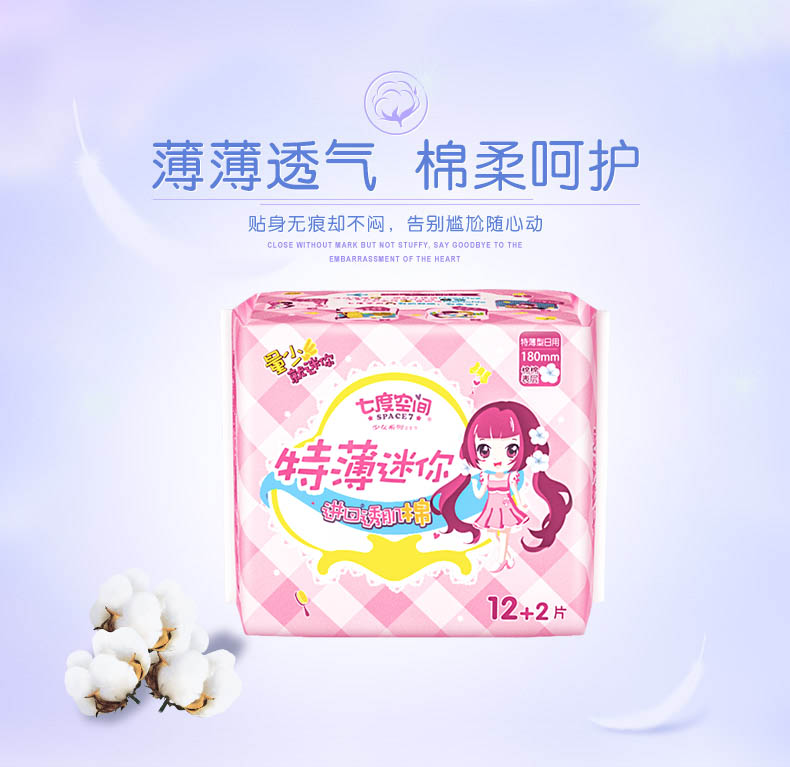 七度空间少女纯棉表层迷你卫生巾14P QSD8314【20043681】