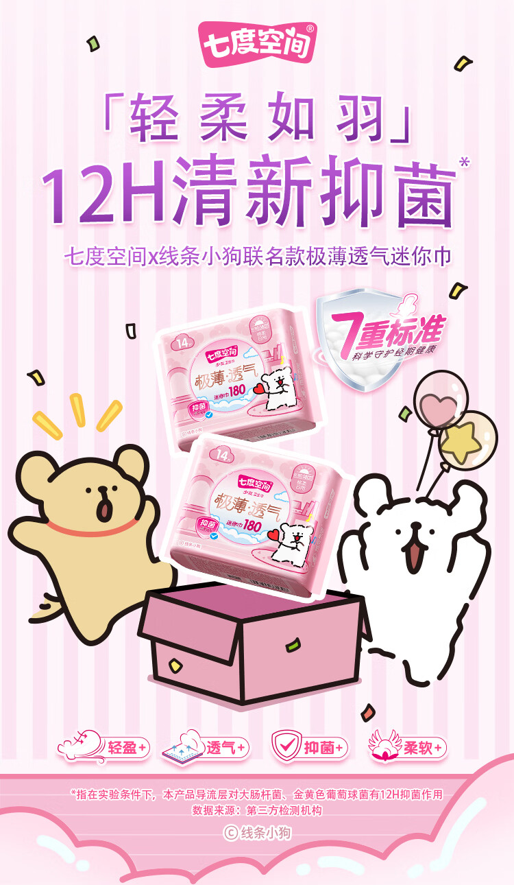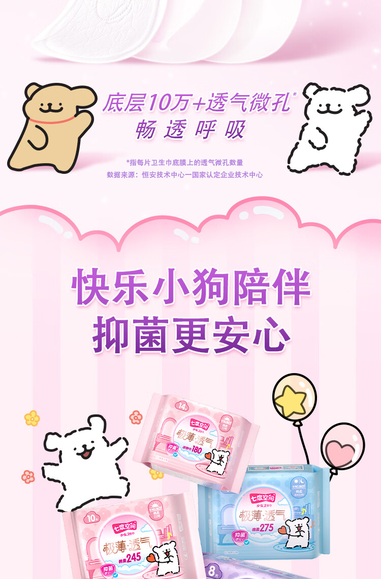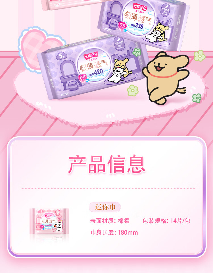 七度空间少女极薄透气棉柔迷你巾180mm14P QSD8314【20043681】